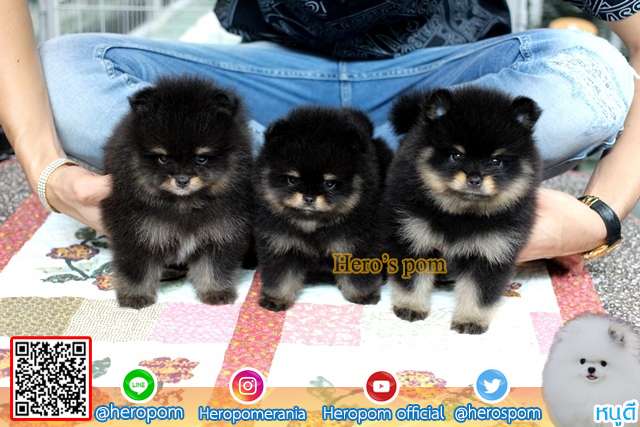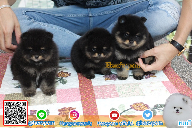 Hero's pom ขายปอมเมอเรเนียน สีแบล็คแทน เพศผู้ อายุ 2 เดือน สอบถาม Line : @heropom, 0985566777 Hero'