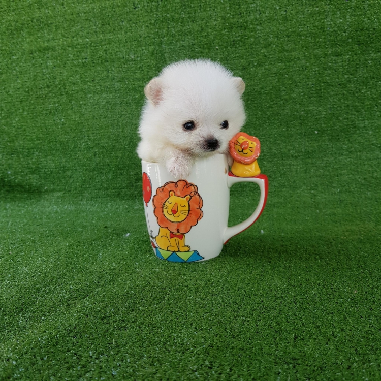 ปอมเมอเรเนี่ยนสีขาวสำลีไซส์ทีคัพ เพศผู้