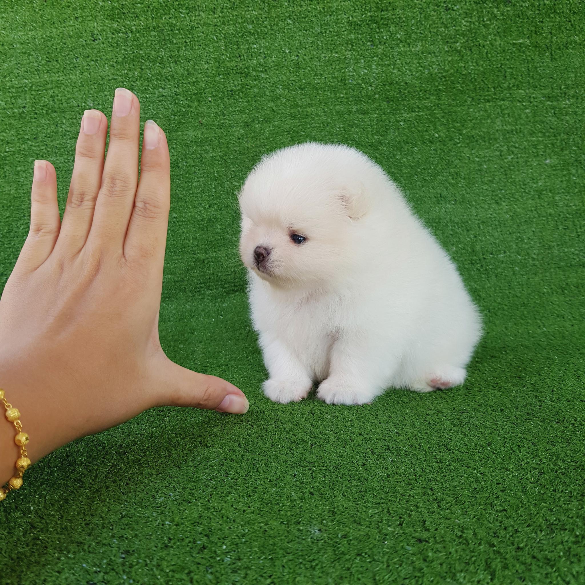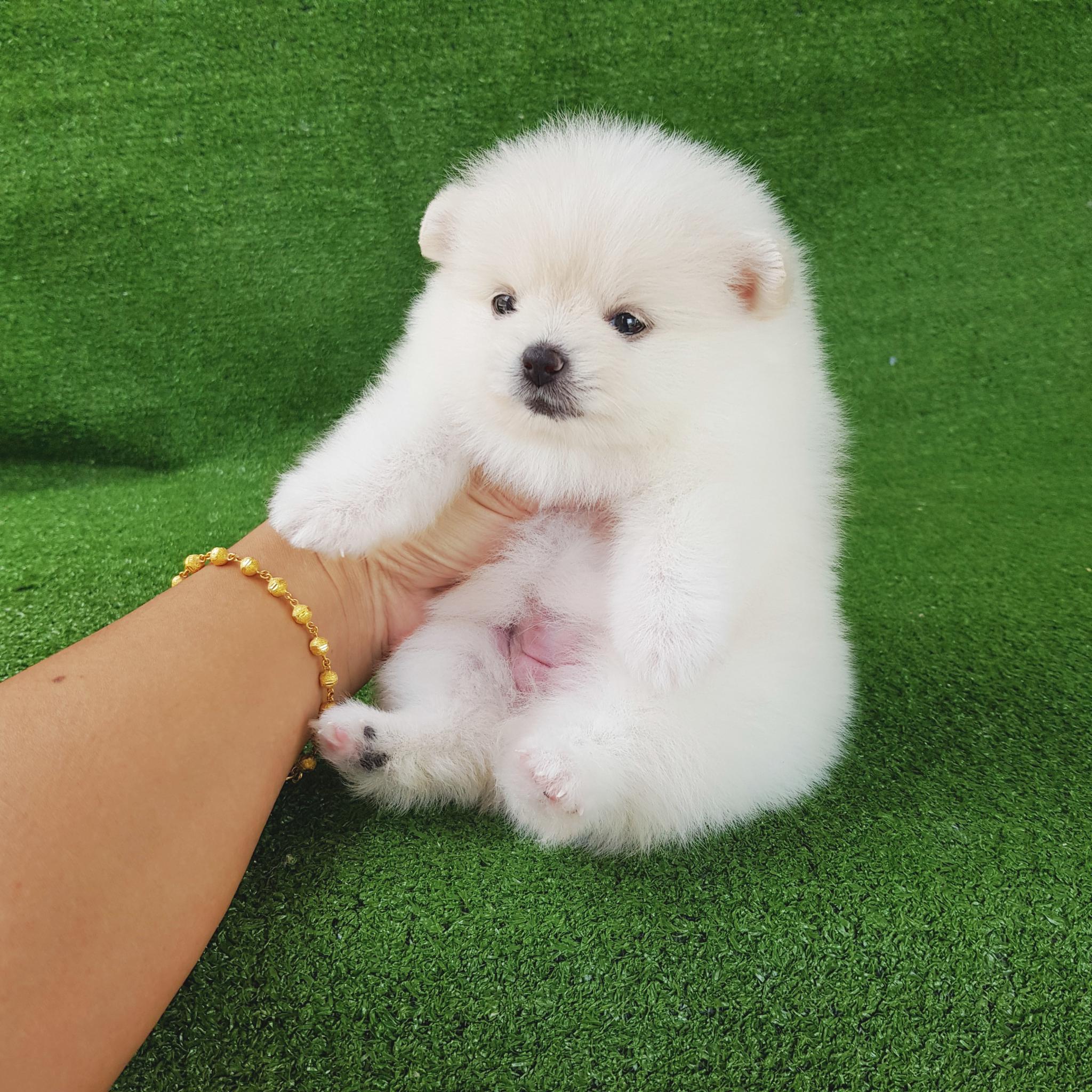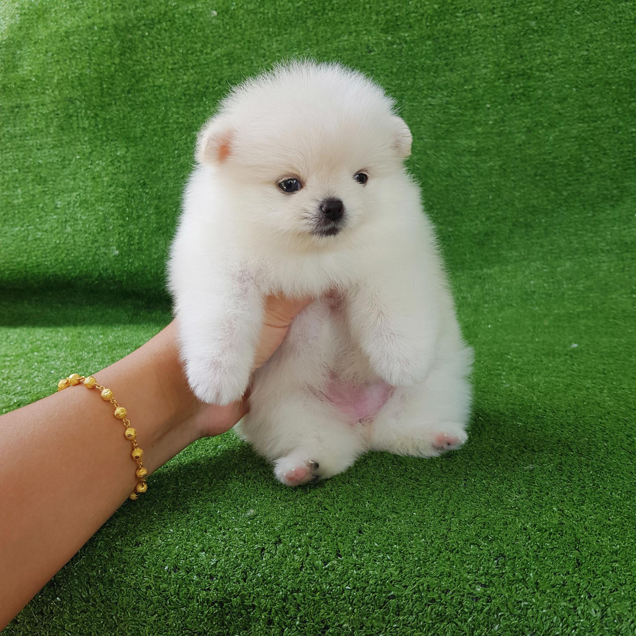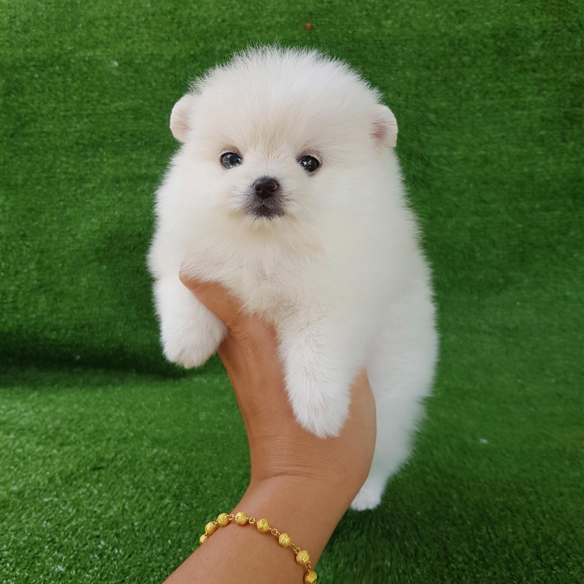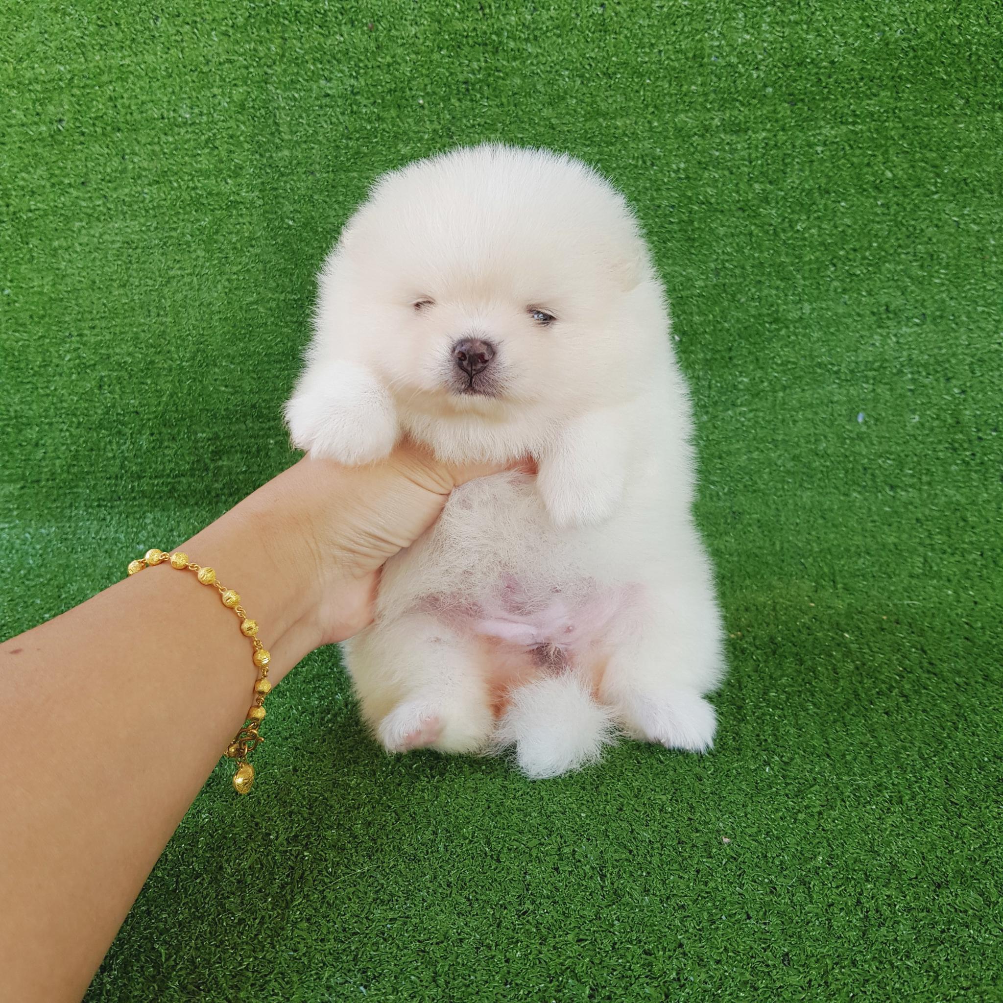 ปอมเมอเรเนี่ยนเพศเมียหน้าหมีสีขาวสองสาว อ้วนๆขาใหญ่ๆหมีๆ เพ็ดเต็มใบ