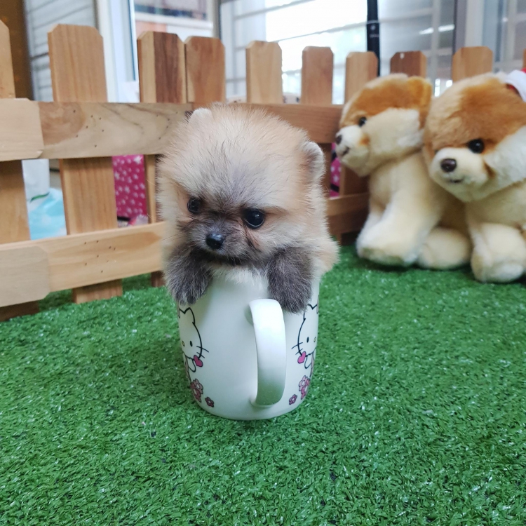 ปอมเมอเรเนี่ยนเพศเมียหน้าสีส้มน้ำตาลไซส์ทีคัพ เพ็ดเต็มใบ
