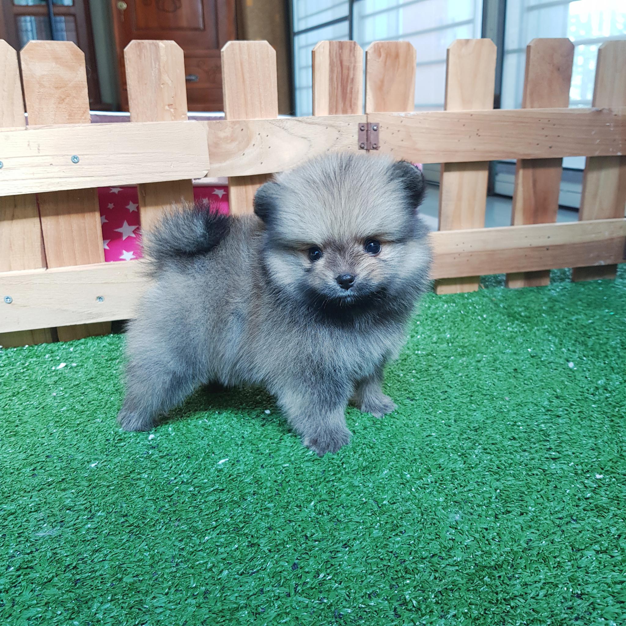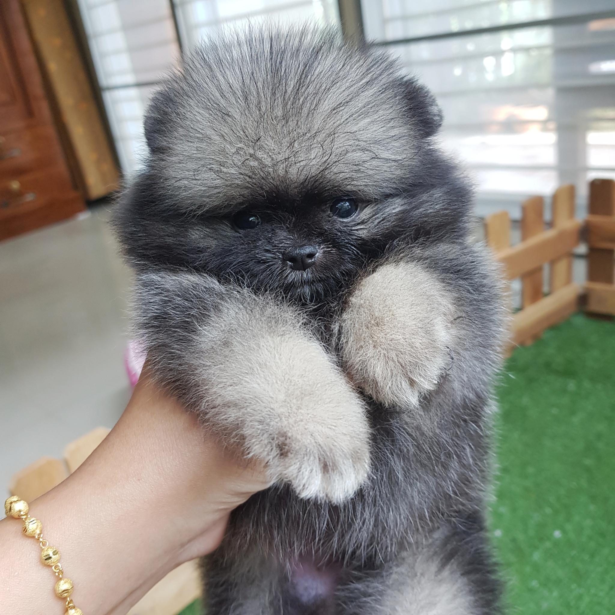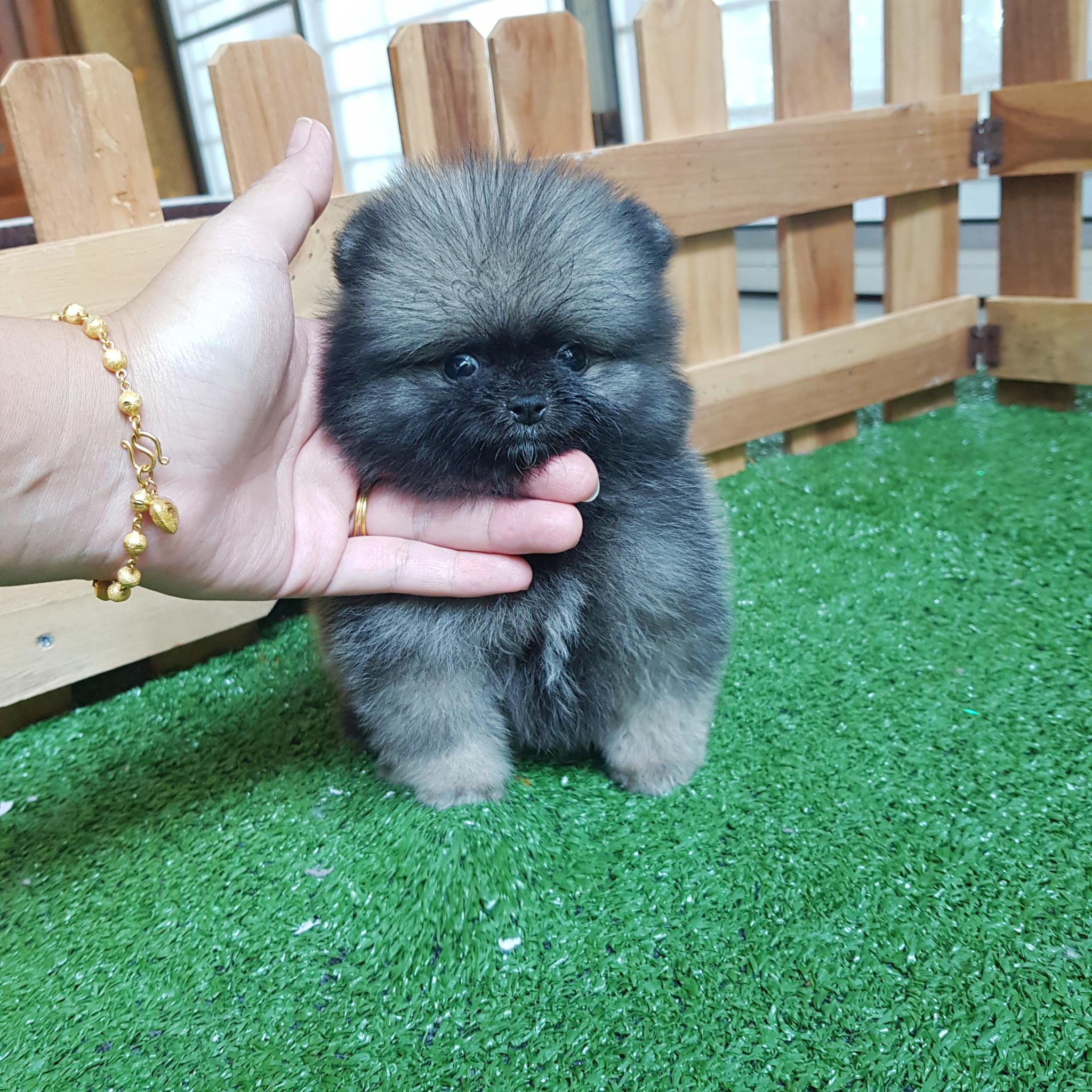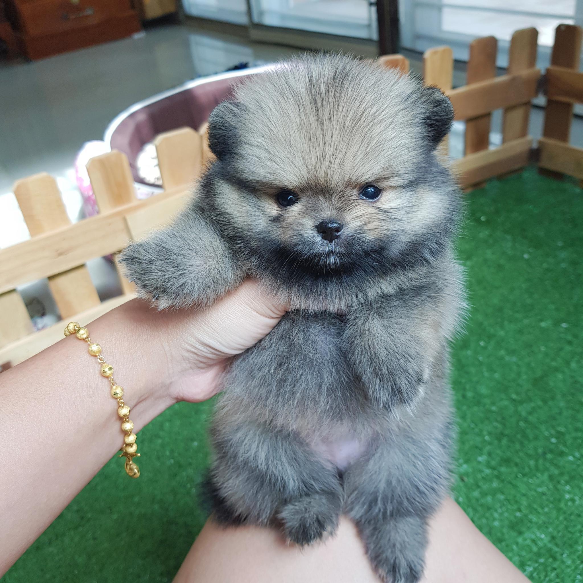 ปอมเมอเรเนี่ยนเพศเมียสีเทา สองสาว โตมาผลัดขนเป็นสีส้ม หน้าหมี มีเพ็ดเต็มใบ