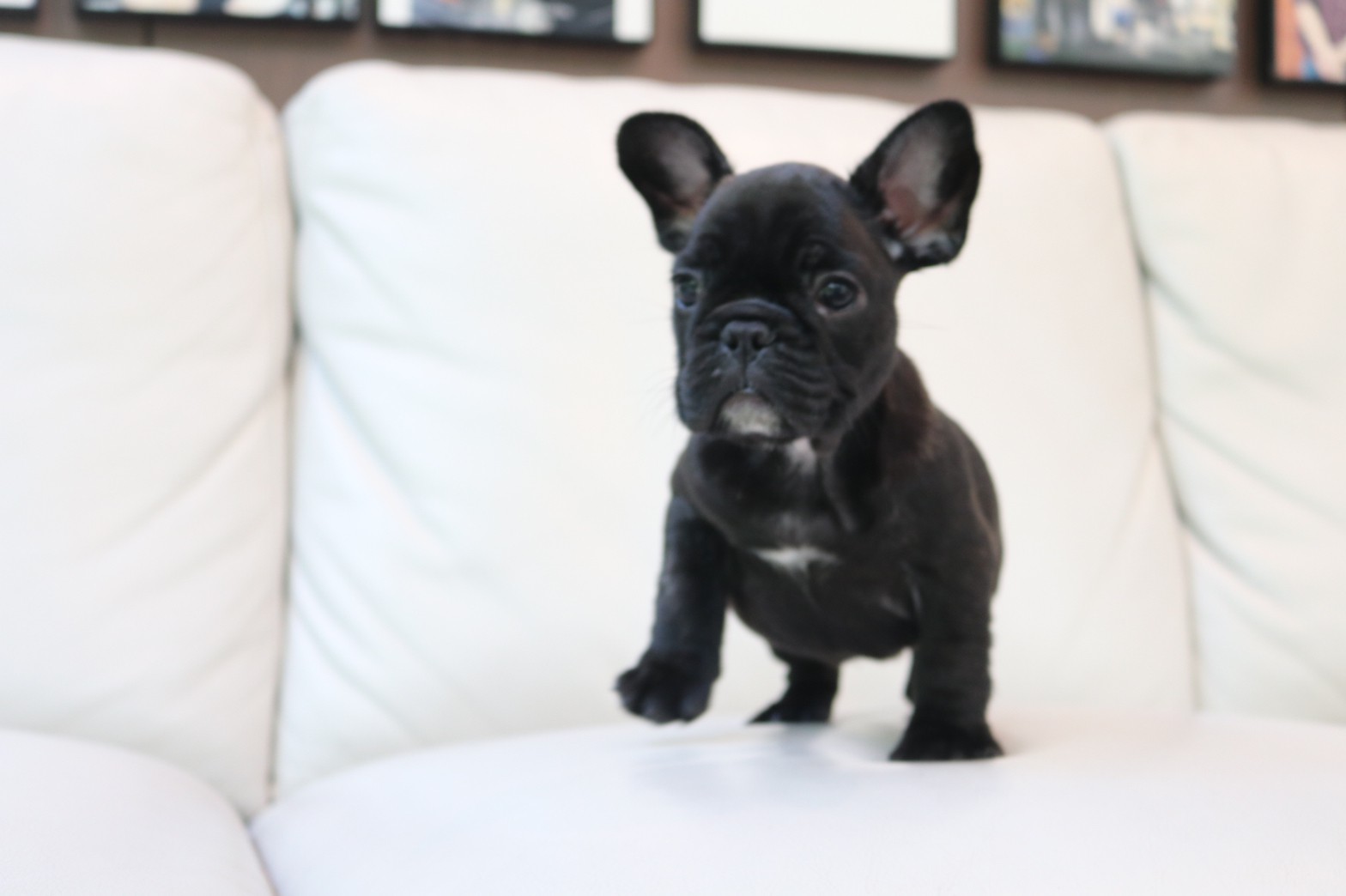 เฟรนช์บลูด็อก เพศเมีย สีดำ หน้าสั้น ใบหูสั้น ขี้เล่น น่ารัก ทรงสวย อายุ 2 ดือน