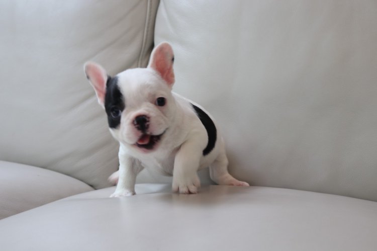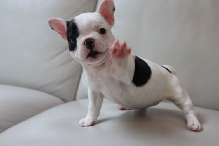 เฟรนช์บลูด็อก เพศเมีย สีขาวดำ หน้าสั้น ใบหูสั้น ขี้เล่น น่ารัก ทรงสวย อายุ 2 ดือน