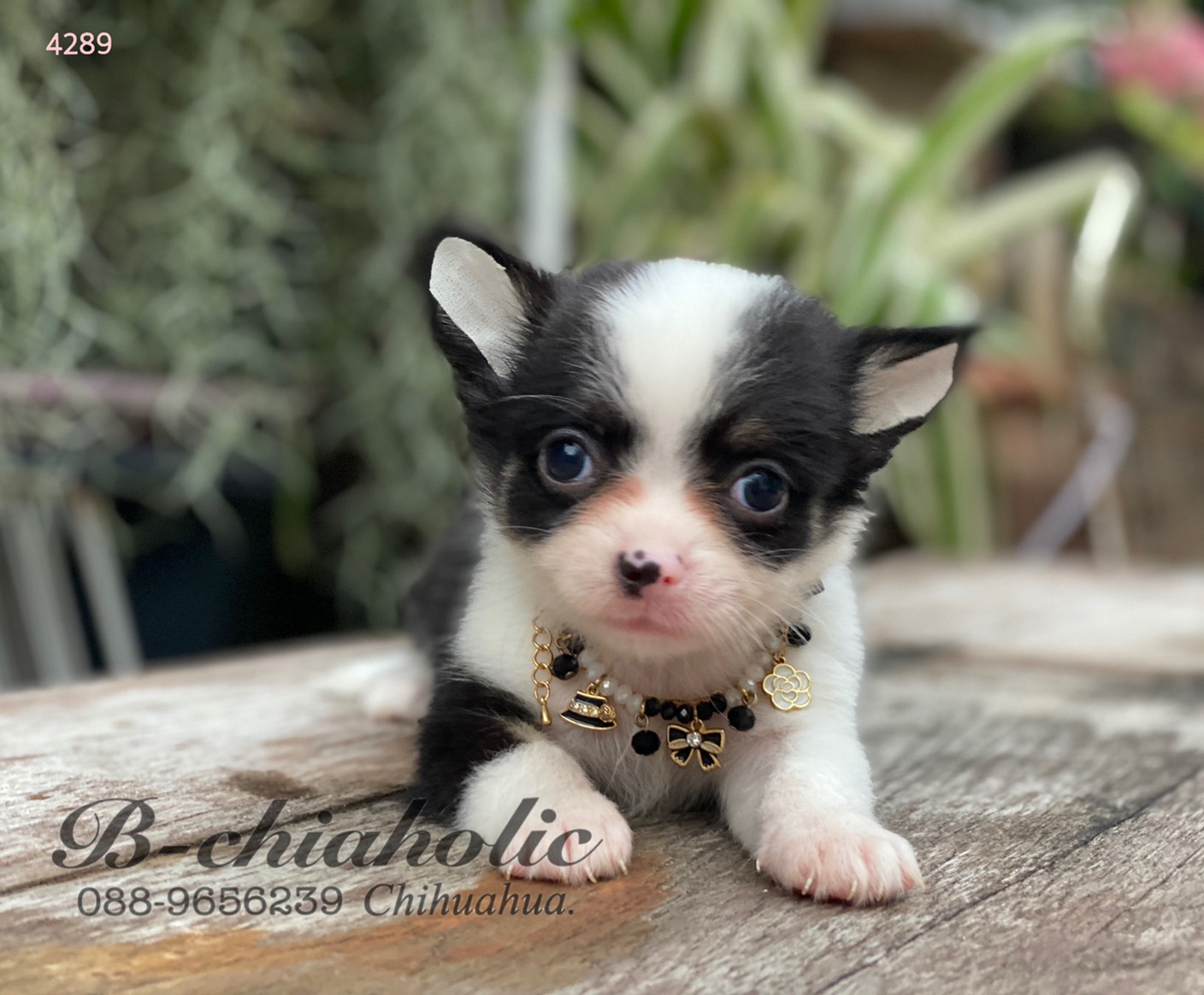ชิวาวา ขนยาว เพศผู้ สีแบลคแทนมาร์คขาว หน้าแบ๊วๆ สายเลือดดี สุขภาพแข็งแรง อายุ 55 วัน สวยใส น่ารัก