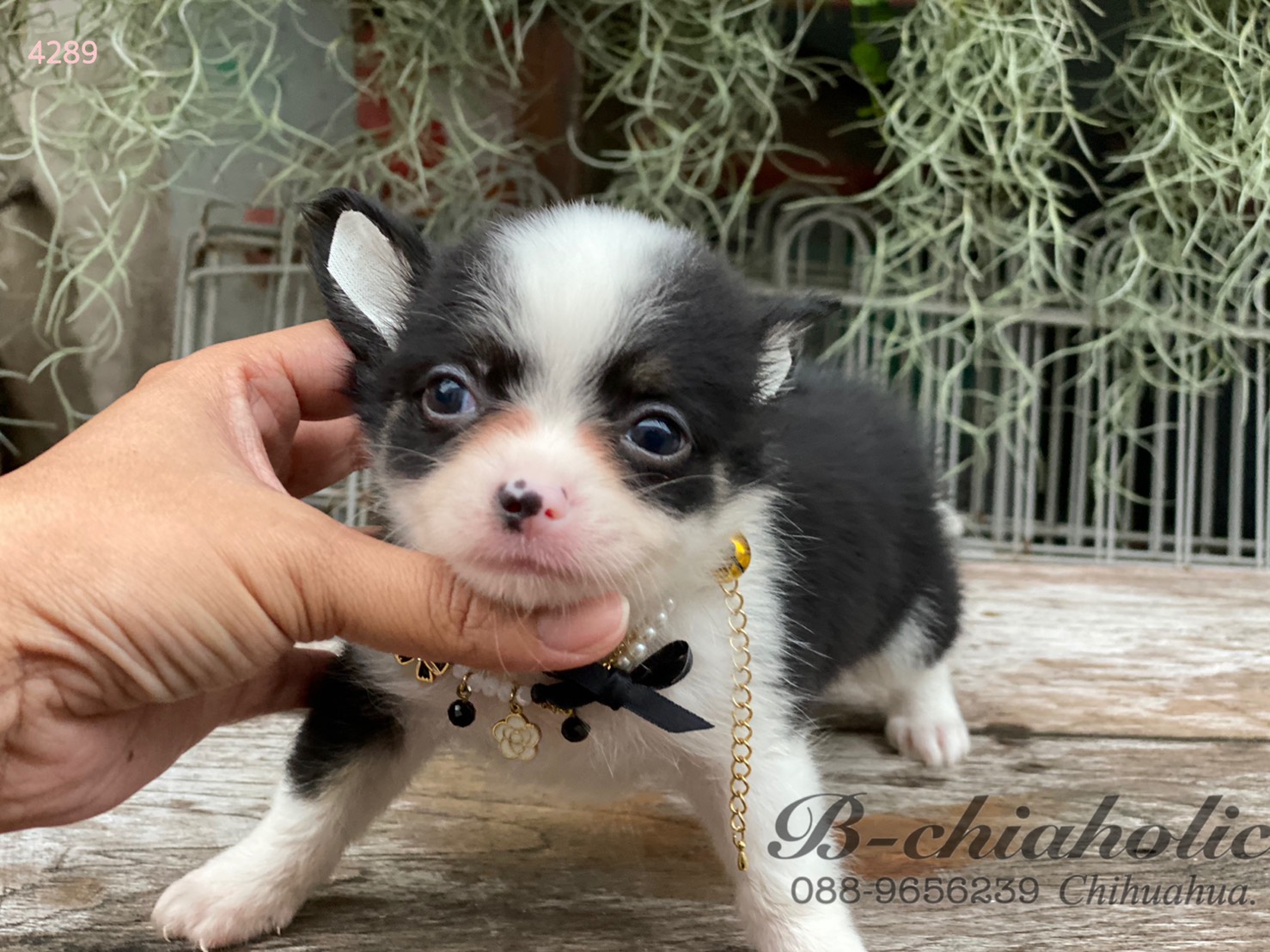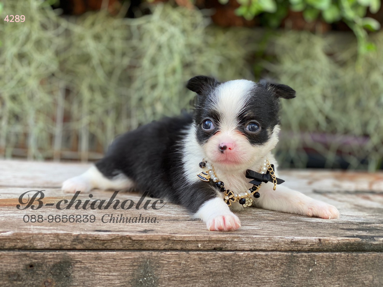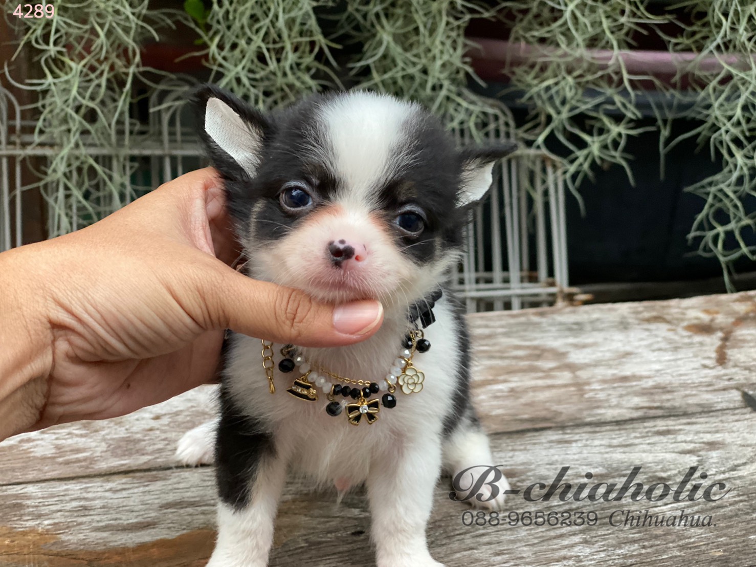 (จองแล้ว)ชิวาวา ขนยาว เพศผู้ สีแบลคแทนมาร์คขาว หน้าแบ๊วๆ สายเลือดดี สุขภาพแข็งแรง อายุ 55 วัน สวยใส