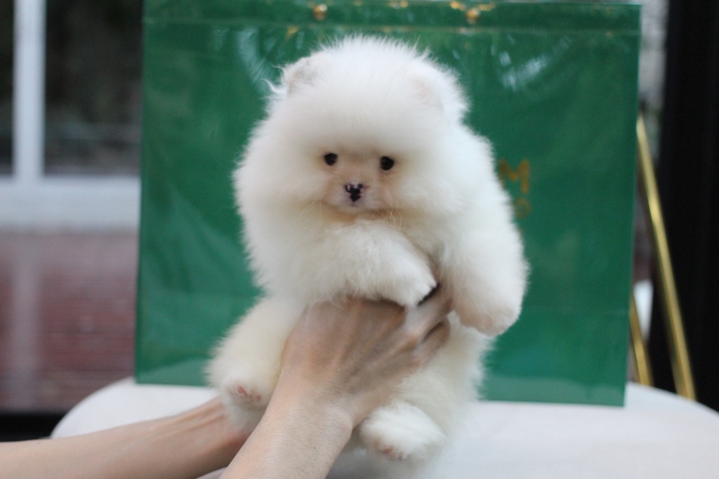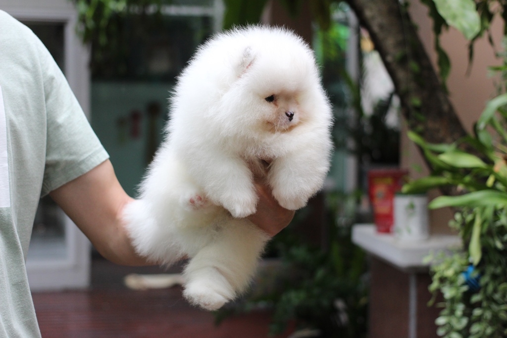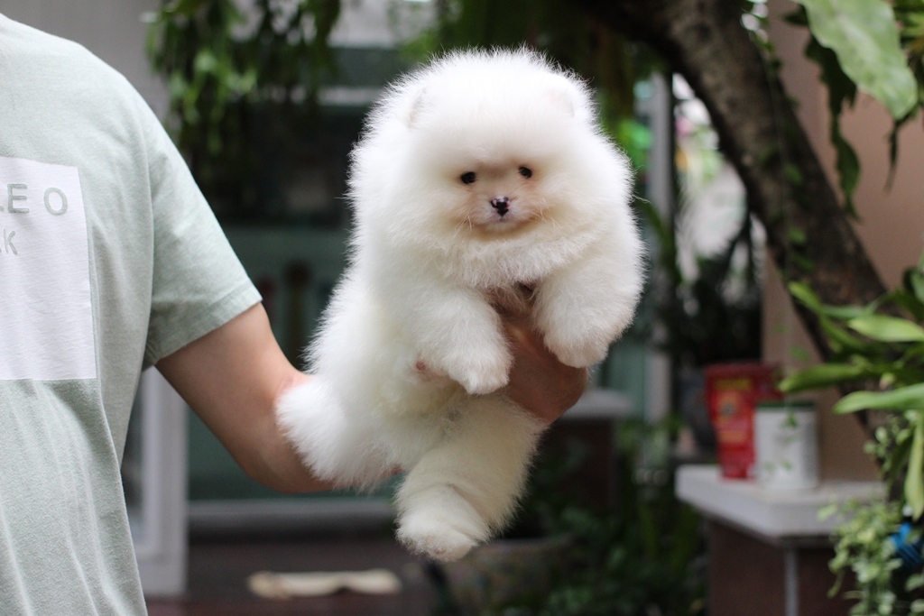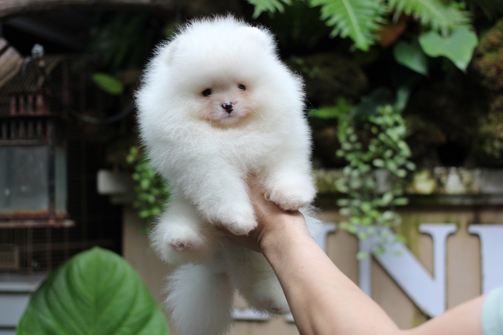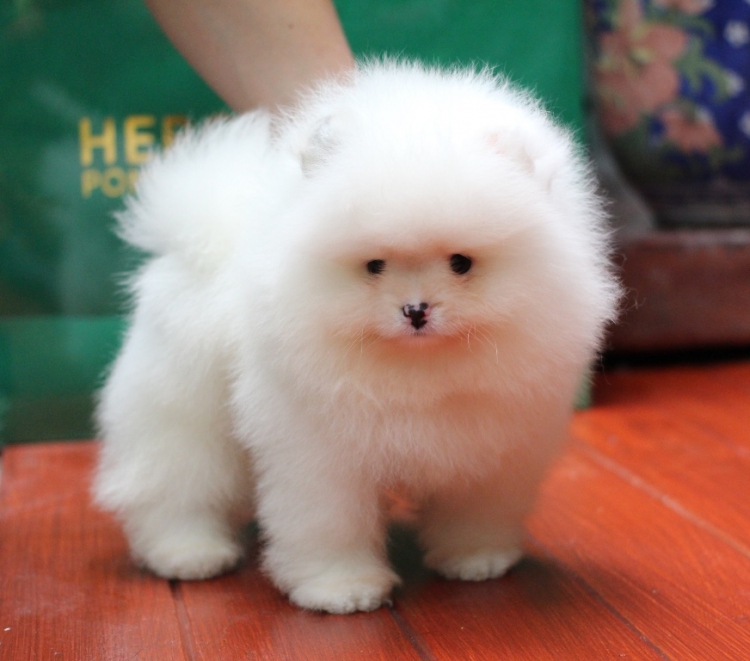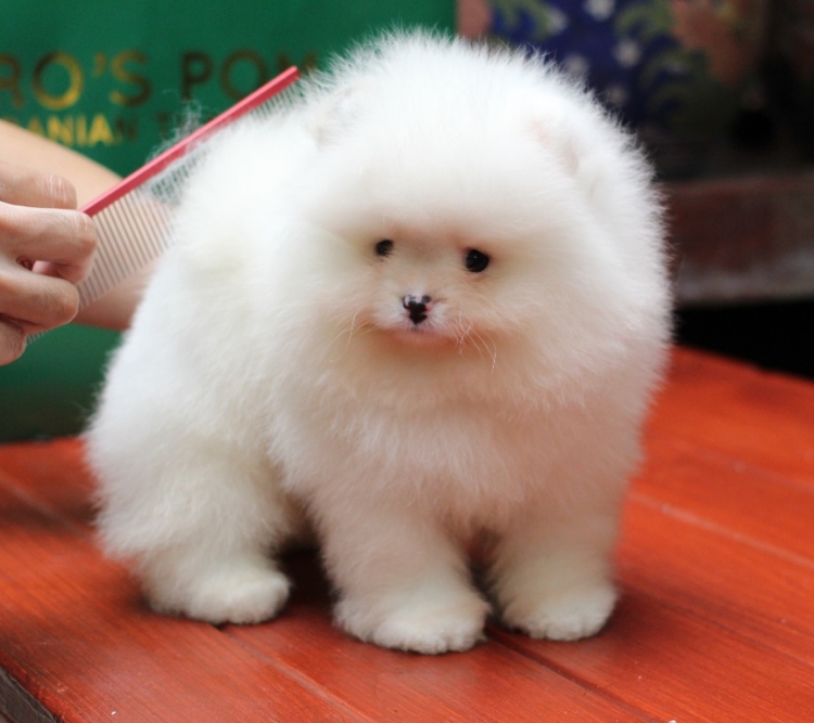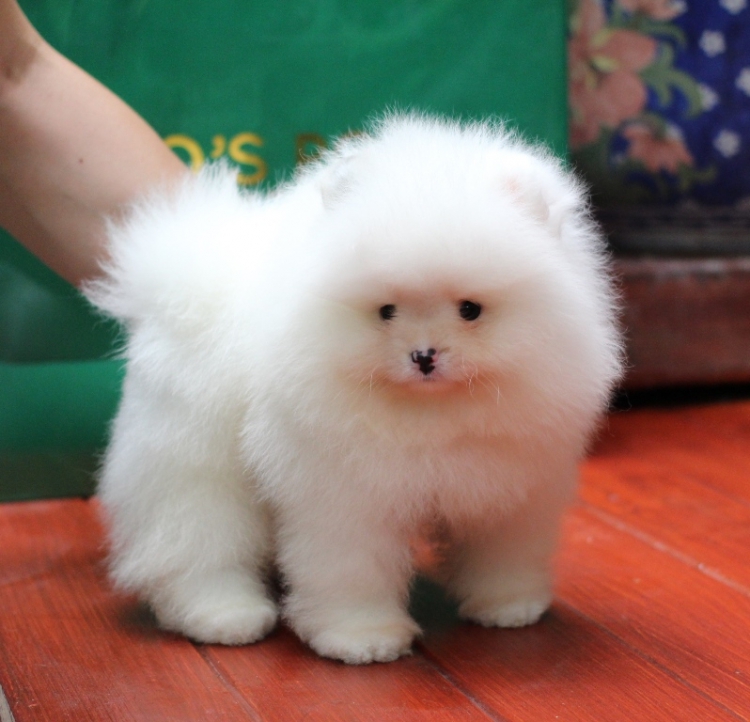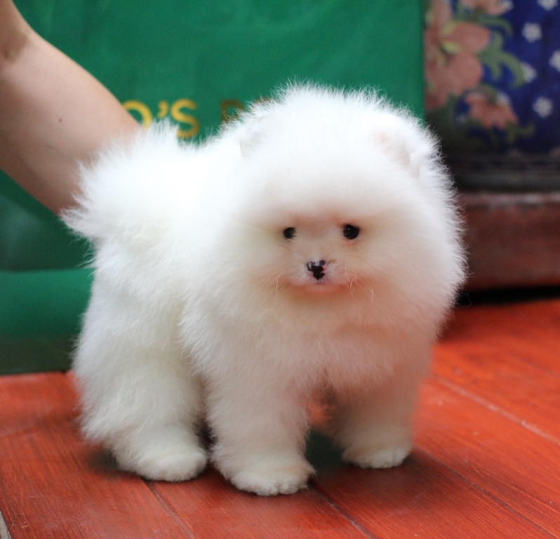 Hero's Pom ขายปอมเมอเรเนียน สีขาว เพศผู้ อายุ 2 เดือน ขนแน่น ขาใหญ่ หน้าหมี มีใบพ็ดดีกรีเต็มใบ