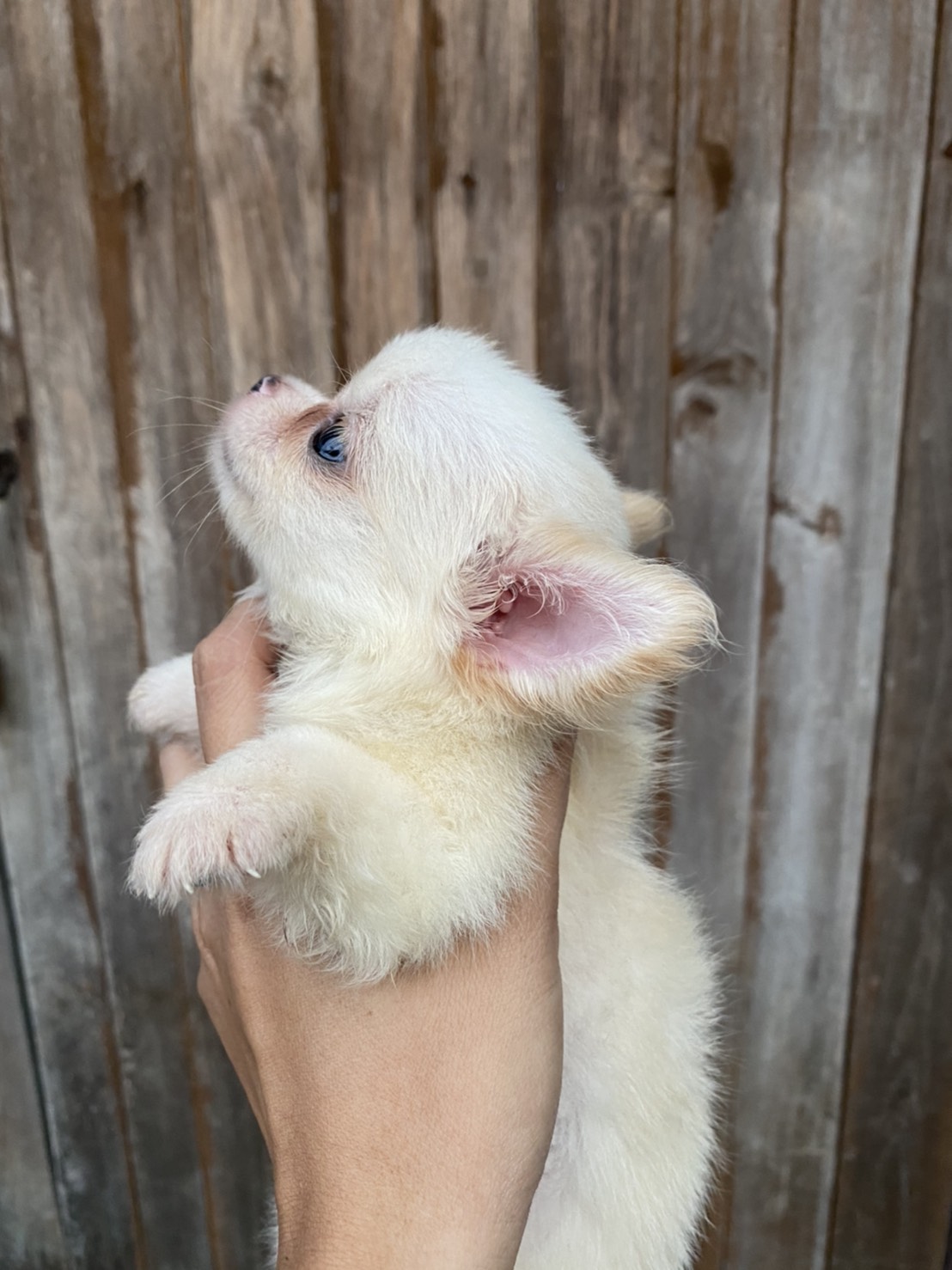 (ขายแล้ว)ชิวาวา ขนยาว เพศเมีย สีขาวครีม หน้าแบ๊วๆสายไต้หวัน สุขภาพแข็งแรง อายุ 50 วัน สวยใส น่ารัก ร