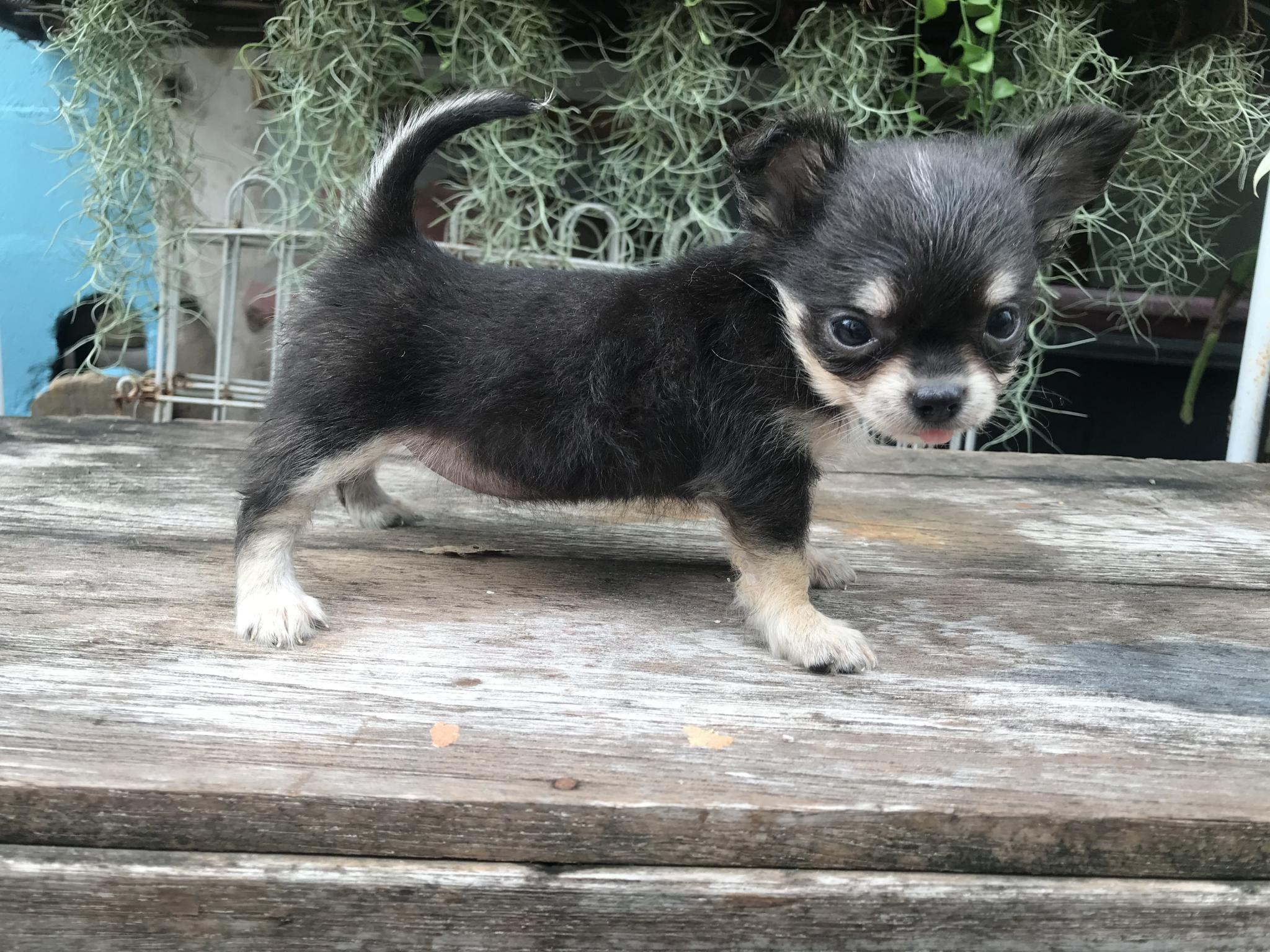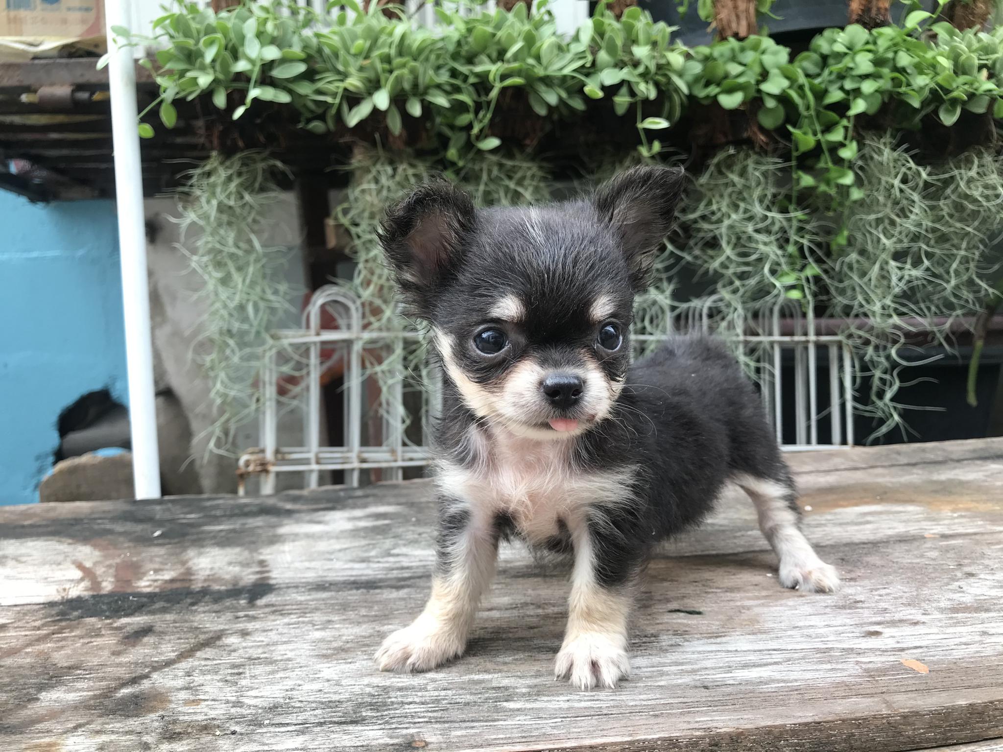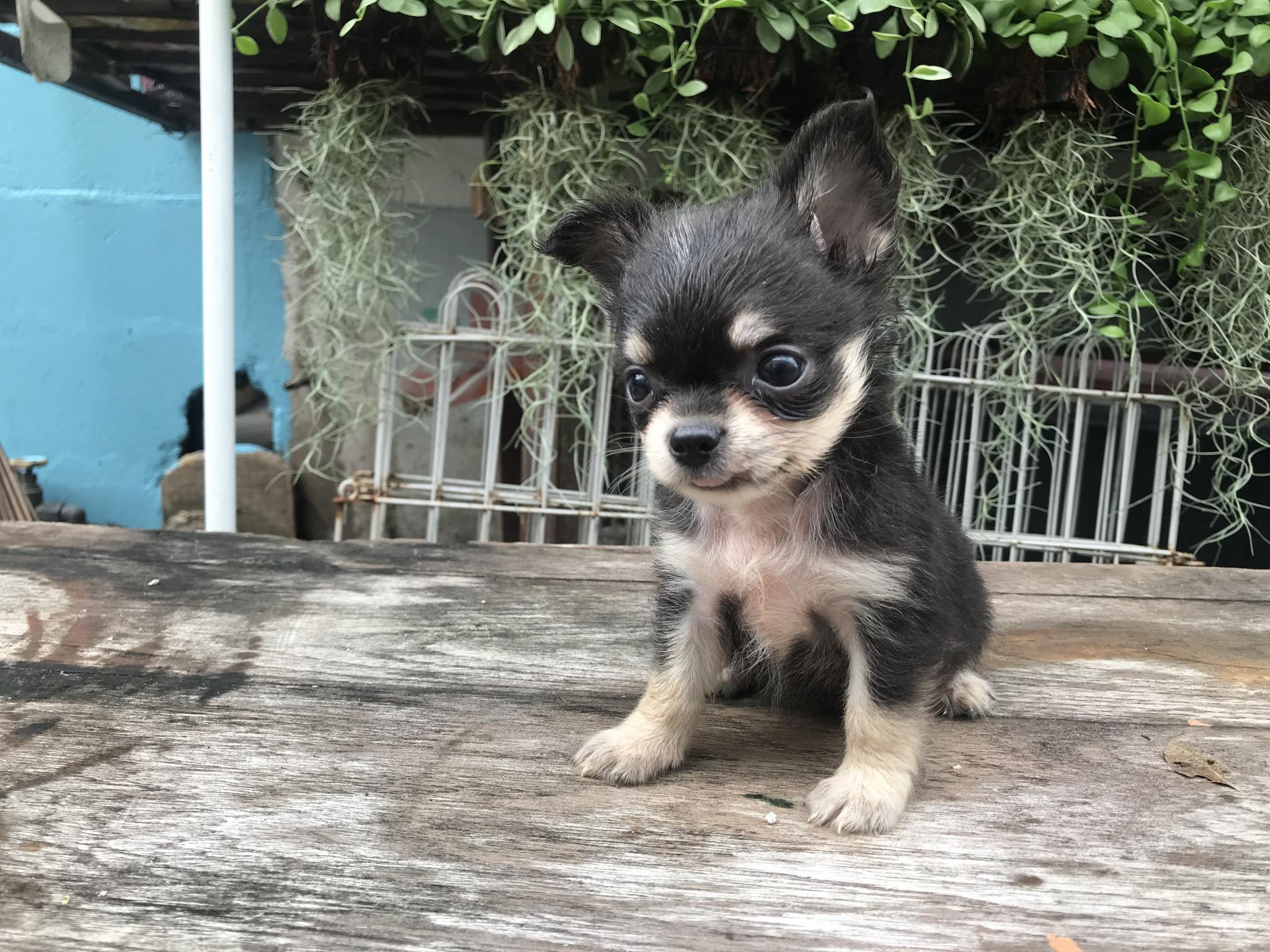 (ขายแล้ว)ชิวาวา ขนยาว ไซร้จิ๋ว เพศเมีย สีขาวแบล็คแทน หน้าแบ๊วๆ สายเลือดดี สุขภาพแข็งแรง
