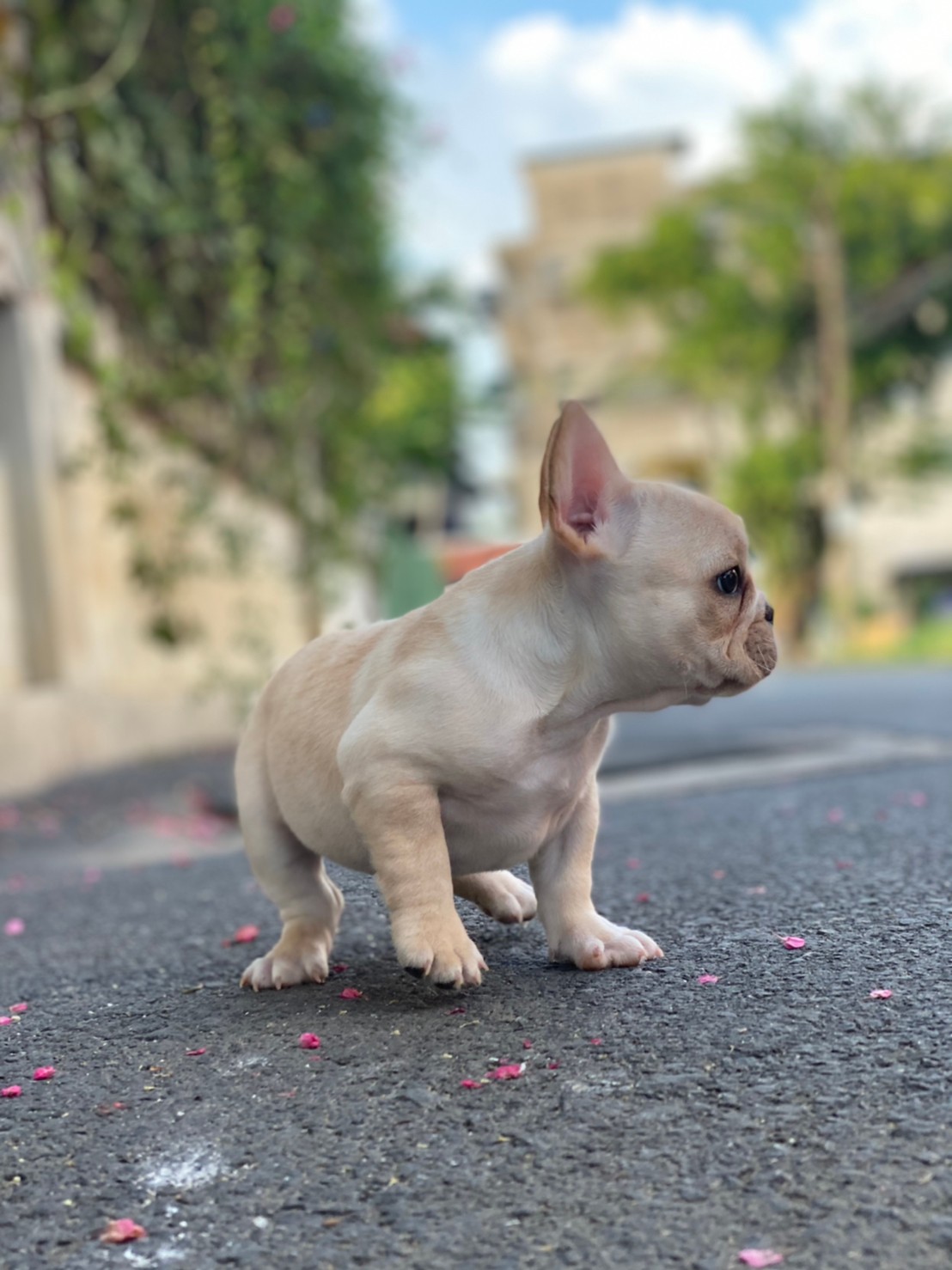 เฟรนช์บลูด็อก เพศเมีย สีครีม หน้าสั้น ใบหูสั้น ขี้เล่น น่ารัก ทรงสวย อายุ 2 ดือน