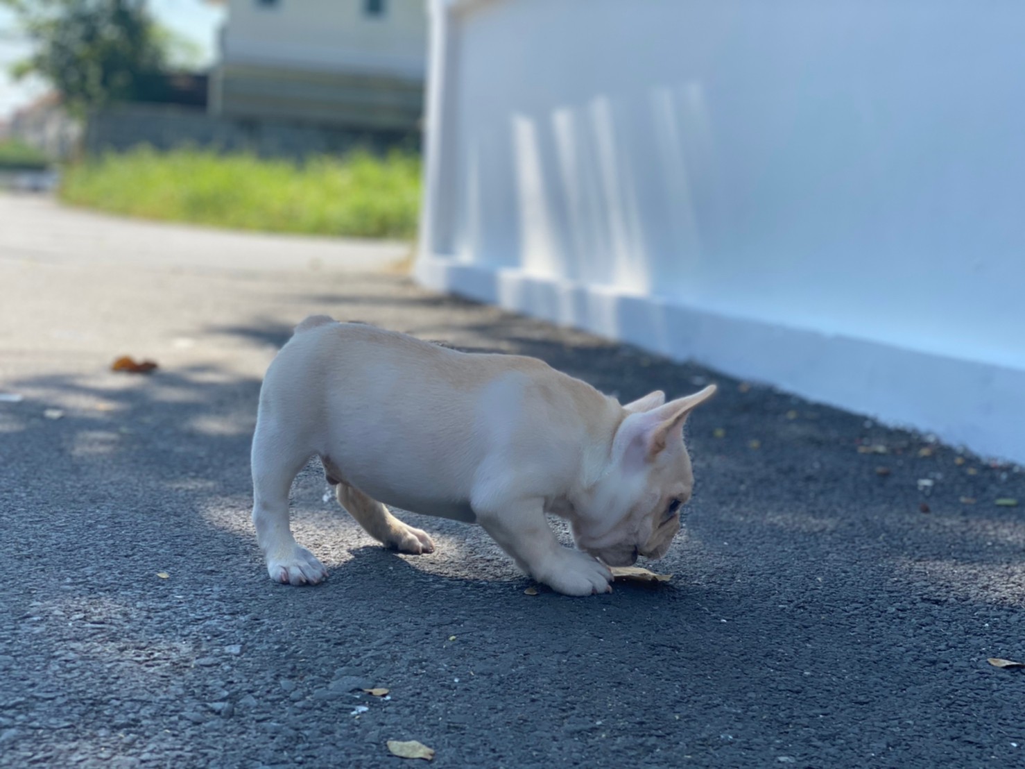 เฟรนช์บลูด็อก เพศผู้ สีครีม หน้าสั้น ใบหูสั้น ขี้เล่น น่ารัก ทรงสวย อายุ 2 ดือน