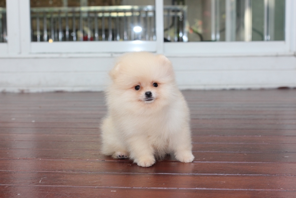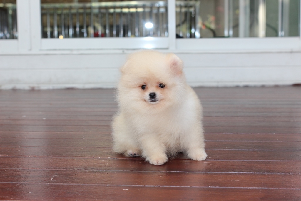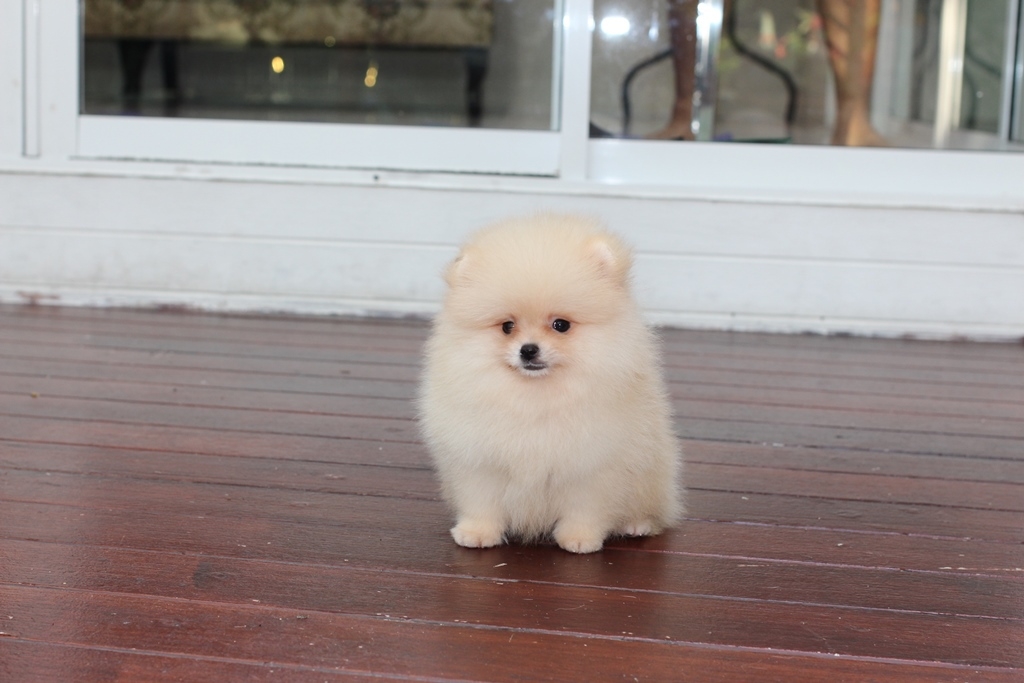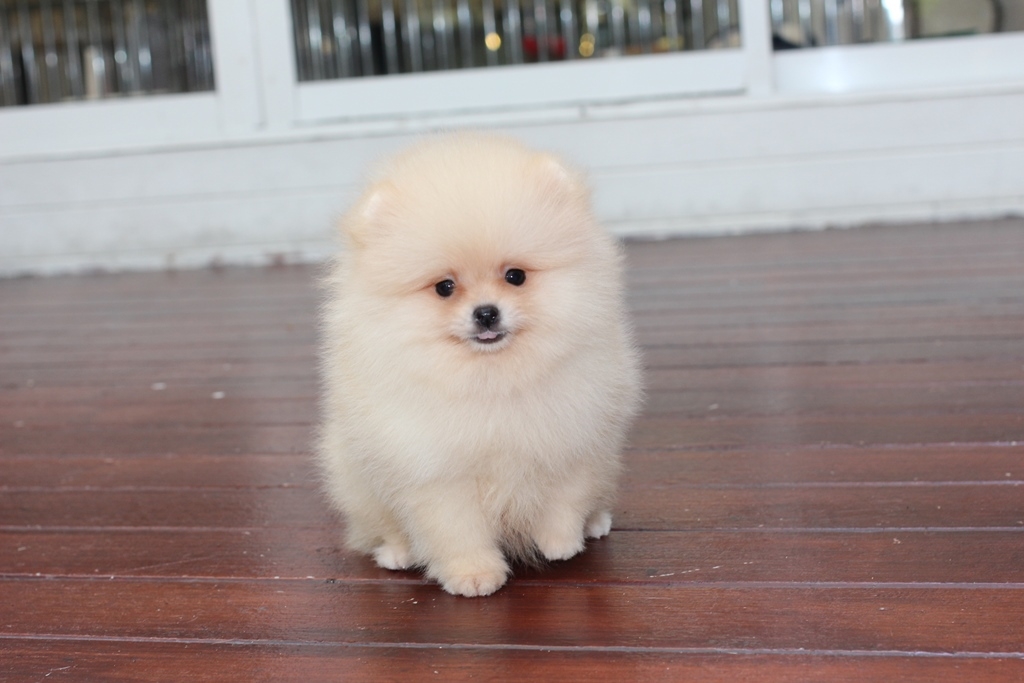 ⋙Hero's Pom⋘ ปอมเมอเรเนียน สีครีม เพศผู้ ขนแน่น อายุ 2 เดือน จัดส่งฟรี สอบถาม Line : @heropom