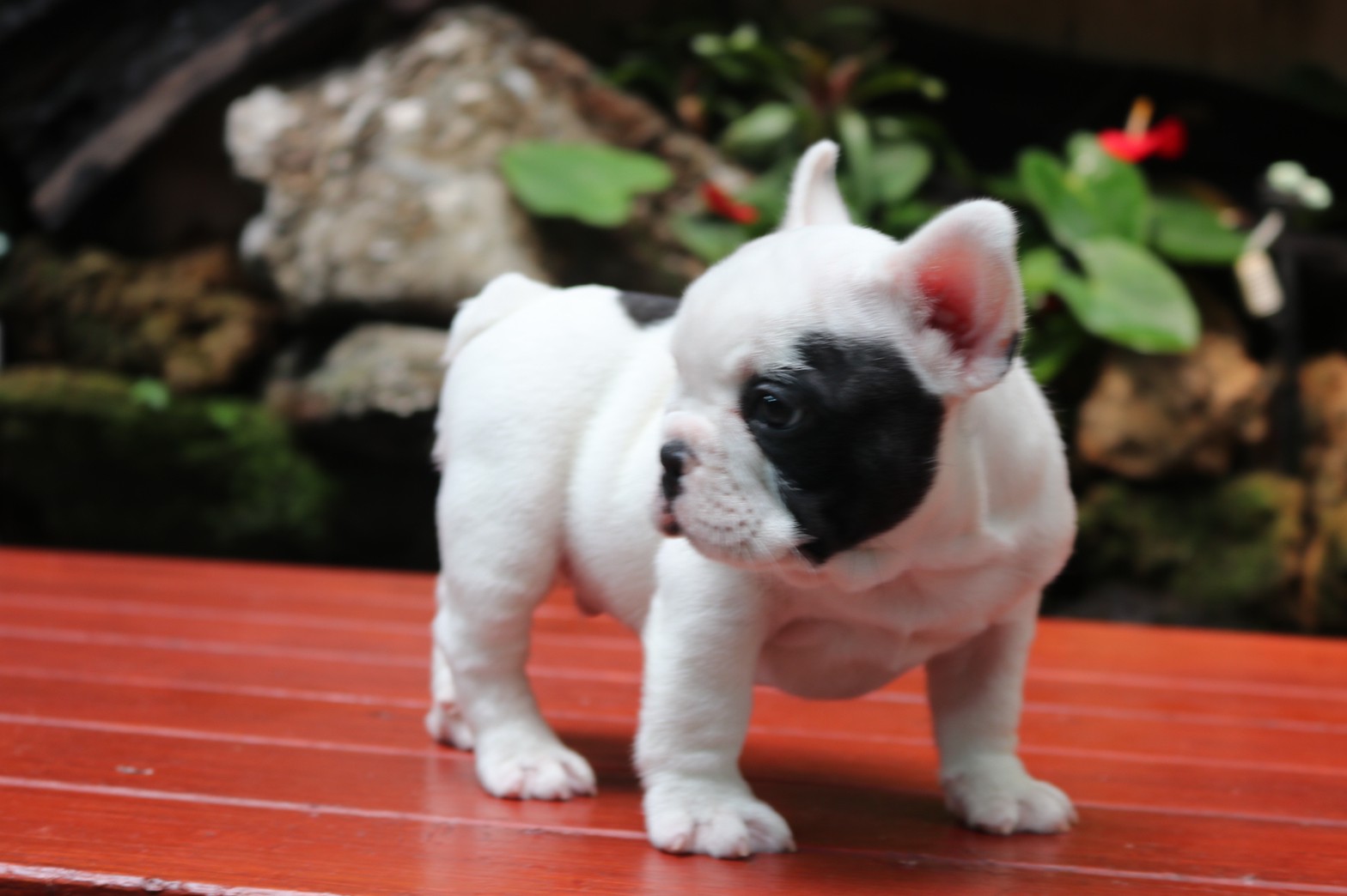 เฟรนช์บลูด็อก เพศผู้ สีขาวดำ หน้าสั้น ใบหูสั้น ขี้เล่น น่ารัก ทรงสวย อายุ 2 ดือน