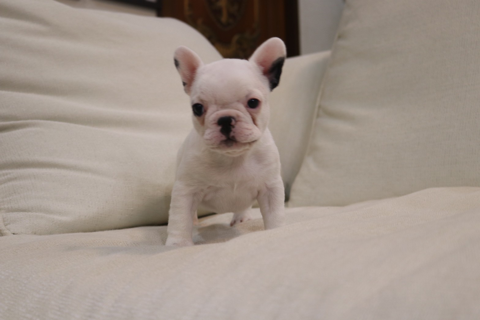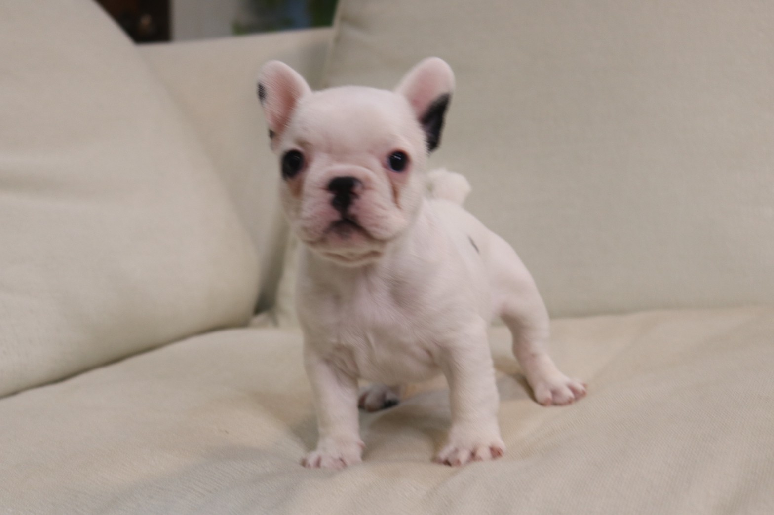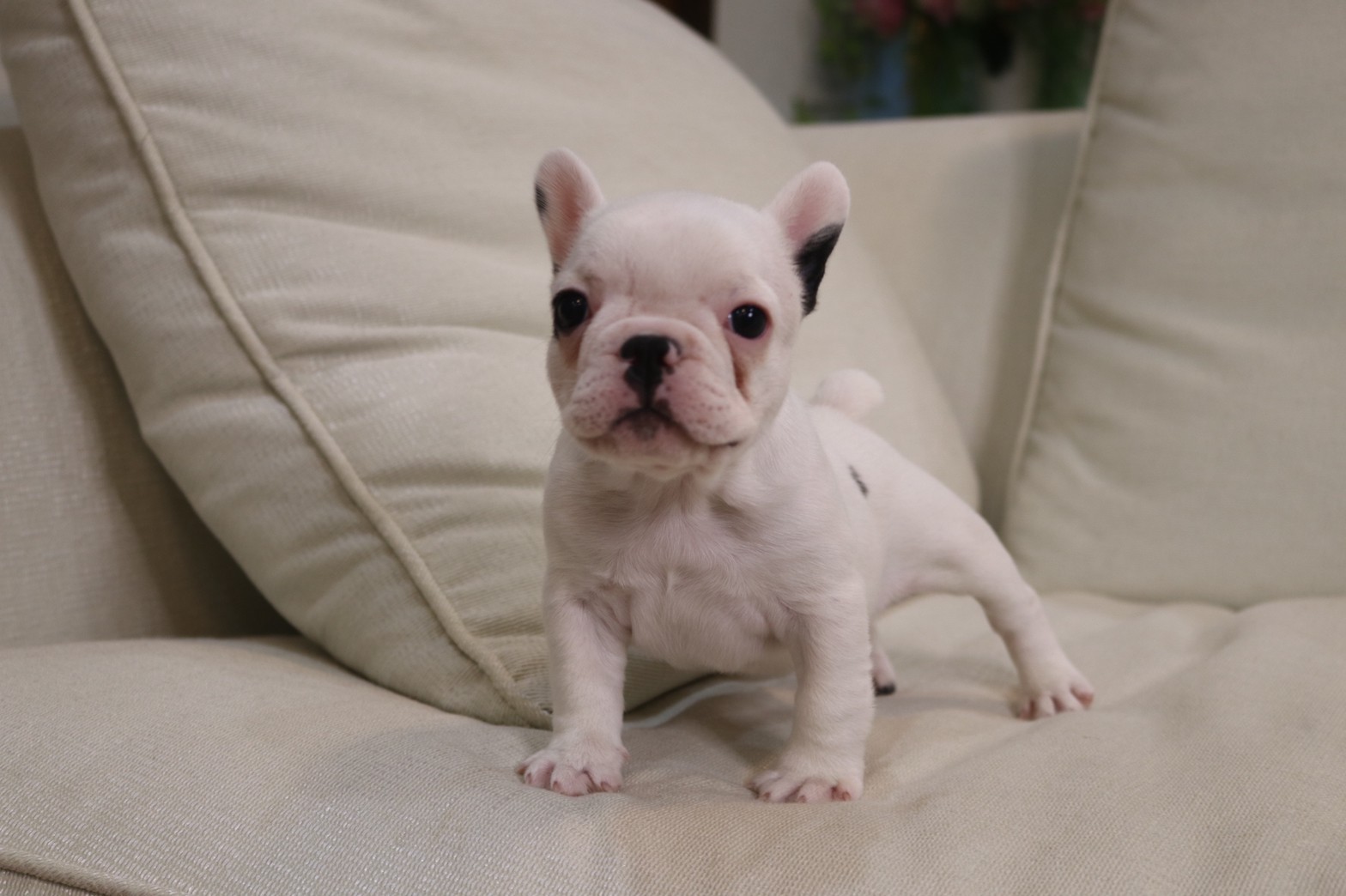 เฟรนช์บลูด็อก เพศเมีย สีขาวดำ หน้าสั้น ใบหูสั้น ขี้เล่น น่ารัก ทรงสวย อายุ 2 ดือน