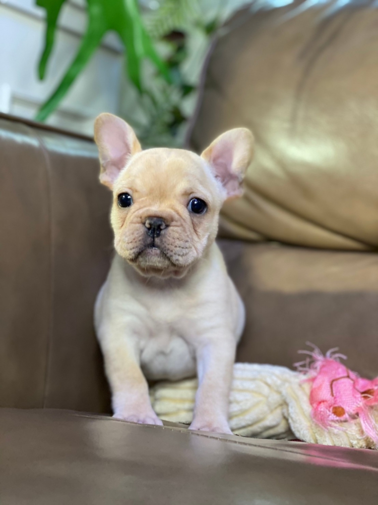 เฟรนช์บลูด็อก เพศเมีย สีครีม หน้าสั้น ใบหูสั้น ขี้เล่น น่ารัก ทรงสวย อายุ 2 ดือน