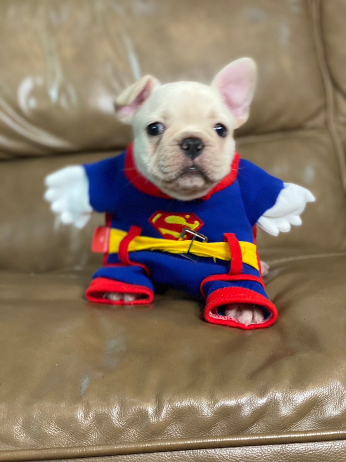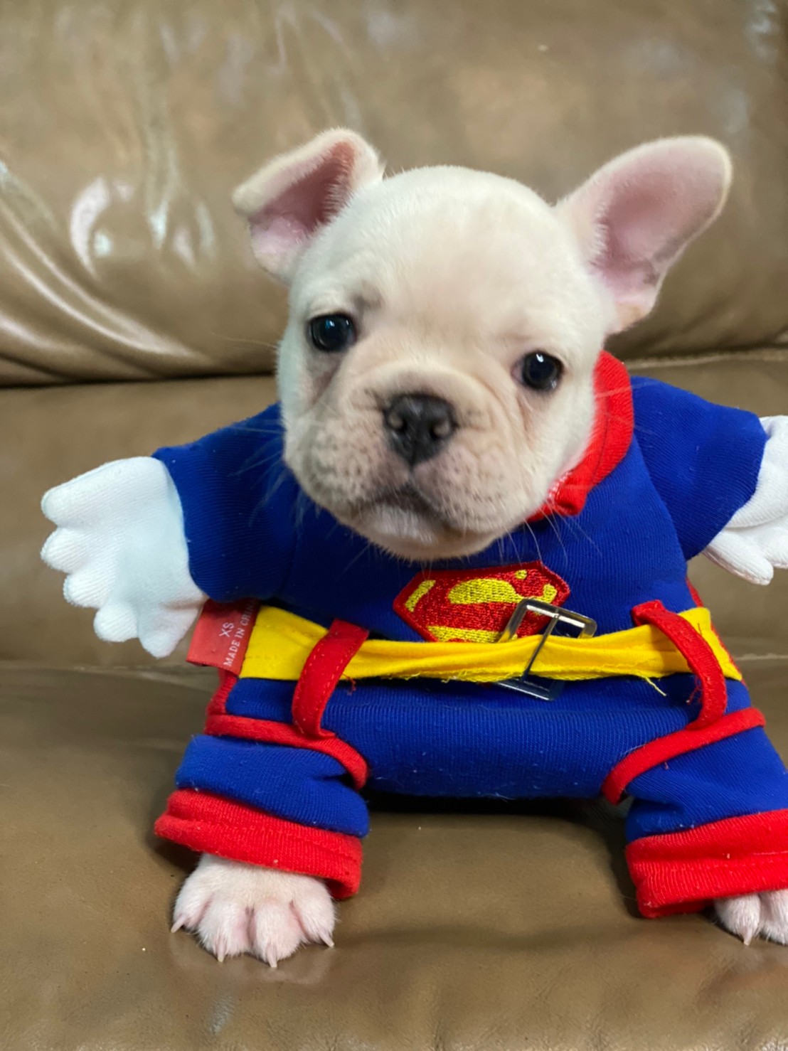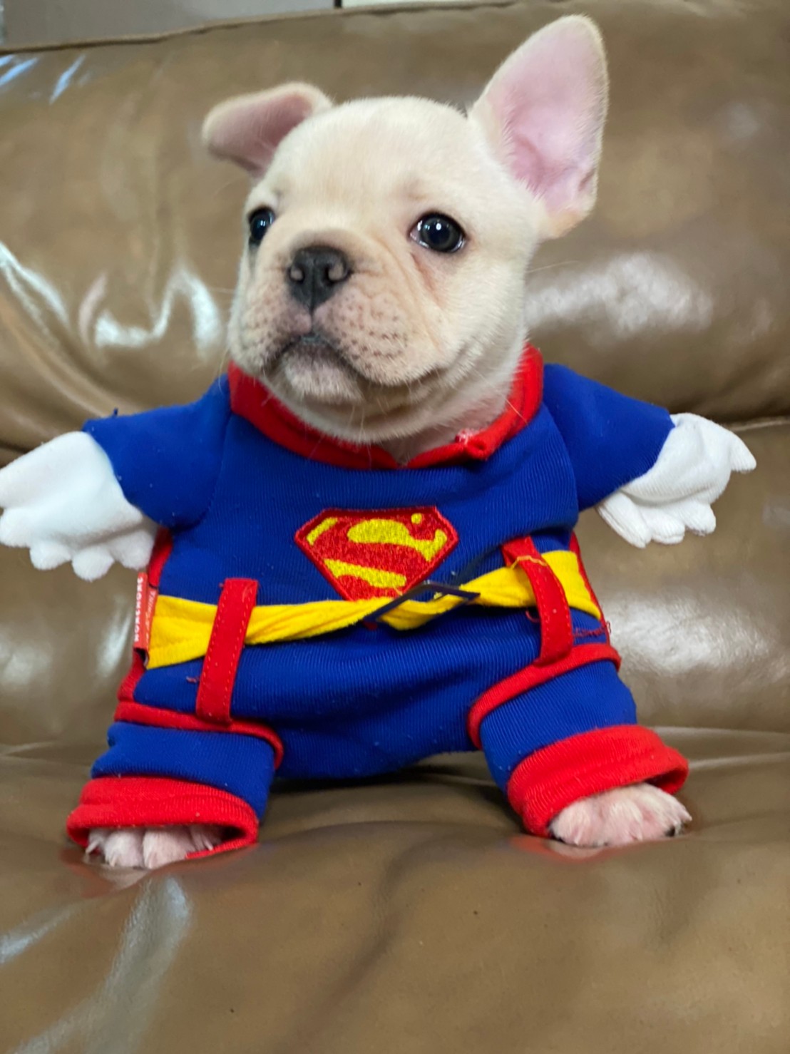 เฟรนช์บลูด็อก เพศผู้ สีครีม หน้าสั้น ใบหูสั้น ขี้เล่น น่ารัก ทรงสวย อายุ 2 ดือน