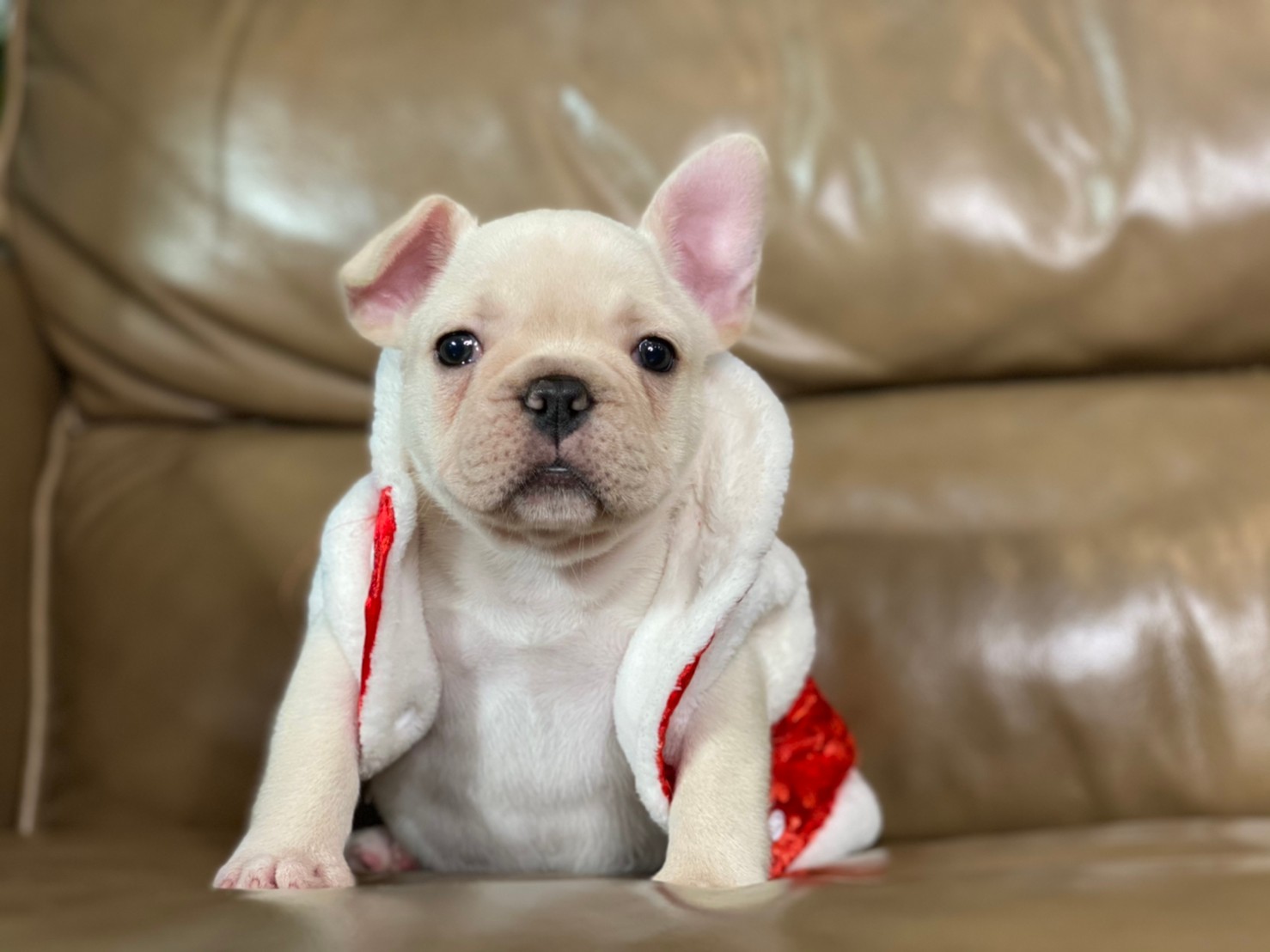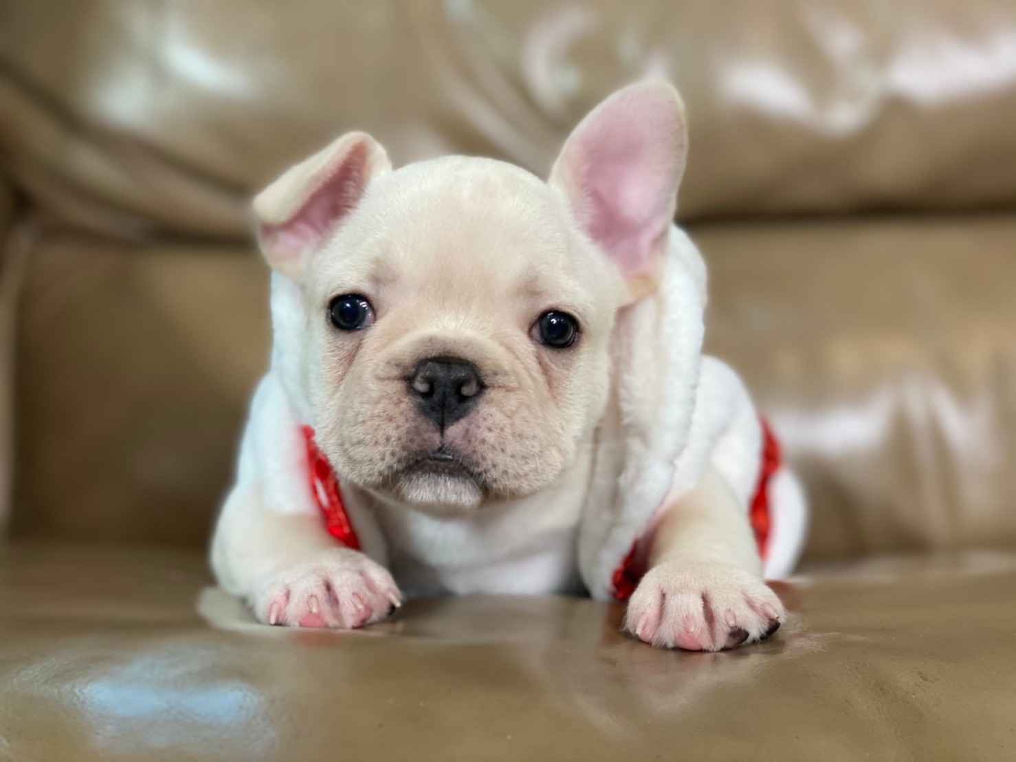 เฟรนช์บลูด็อก เพศผู้ สีครีม หน้าสั้น ใบหูสั้น ขี้เล่น น่ารัก ทรงสวย อายุ 2 ดือน