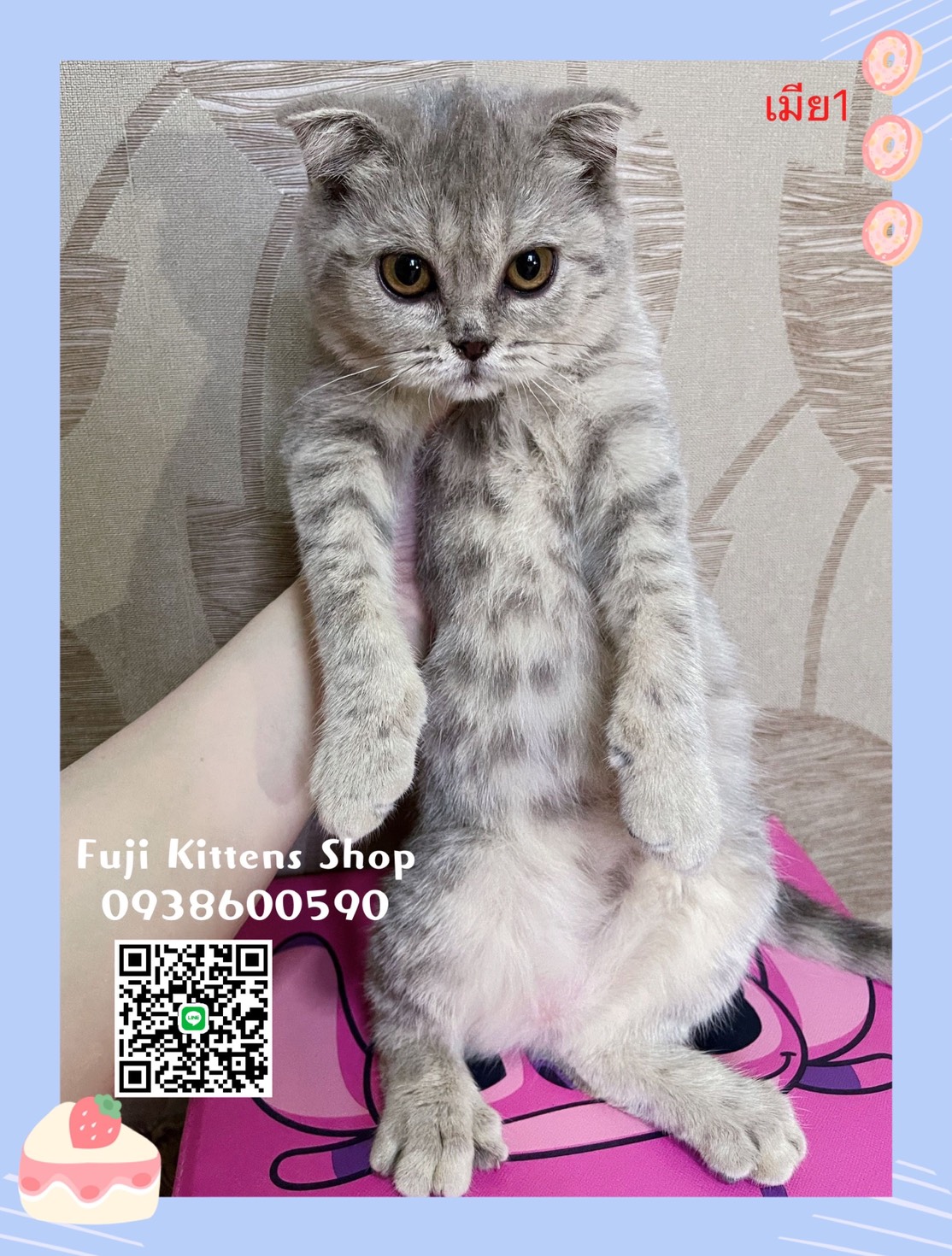 -(เมีย1) สีเทาลายขาว หูพับดีด อายุ4เดือนกว่า ราคาตัวละ 10,900 บาท >>ฉีดวัคซีนเข็มแรก ถ่ายพยาธิแล้ว(สมุดหาย