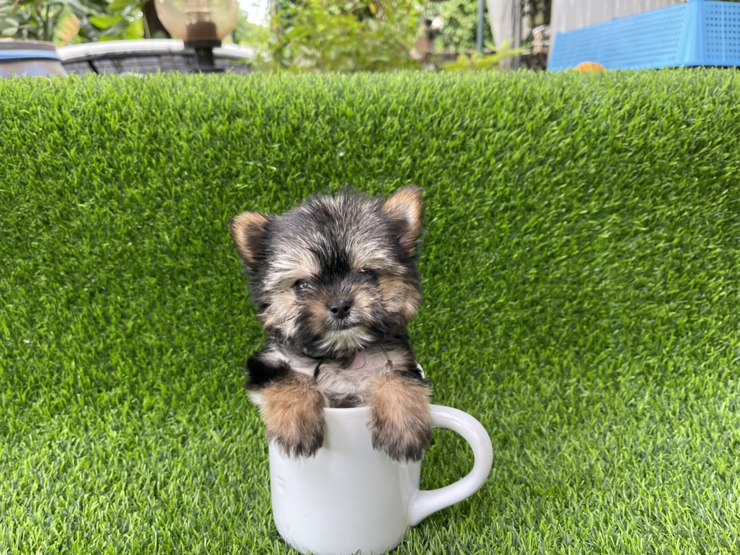 ขายลูกสุนัขสายพันธุ์ยอร์คเชียร์ เพศเมีย ขนาด ทีคัพ(เล็กมาก) สีแบล็คแทน อายุ 2.5 เดือน