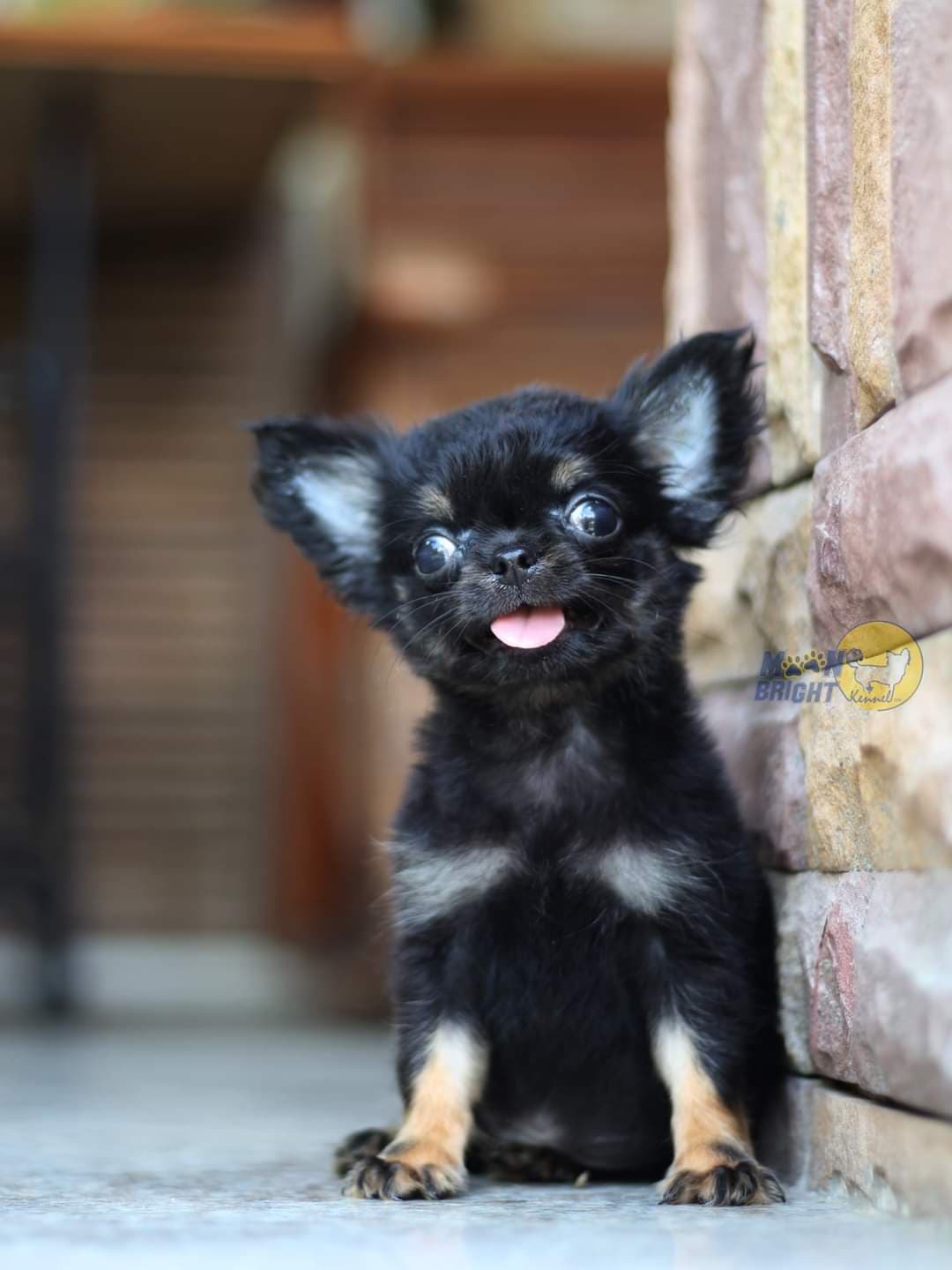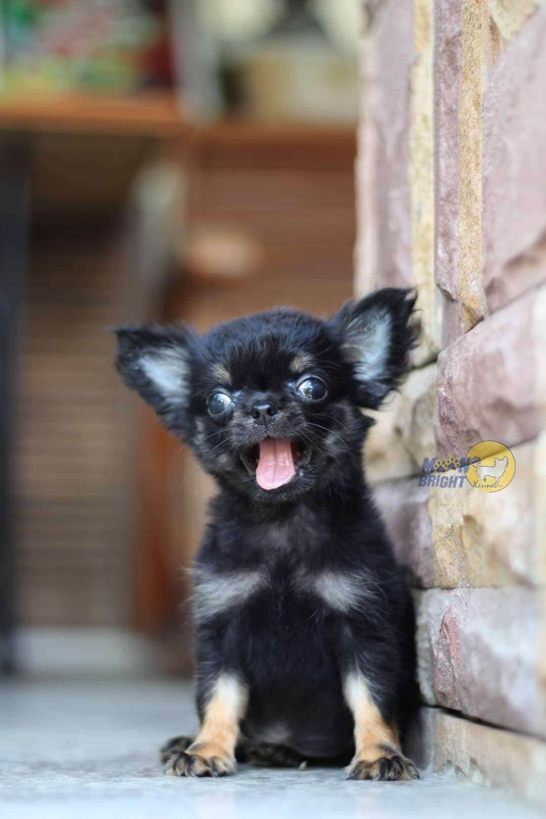 (MOONBRIGHT KENNEL) โปรโมชั่นมาแล้ว!!! เมสันบอย ชิวาวาขนยาวผิวสี ตัวเล็กปุ๊กปิ๊ก หน้าตาดีสายเลือดดี