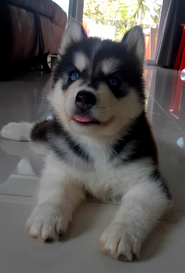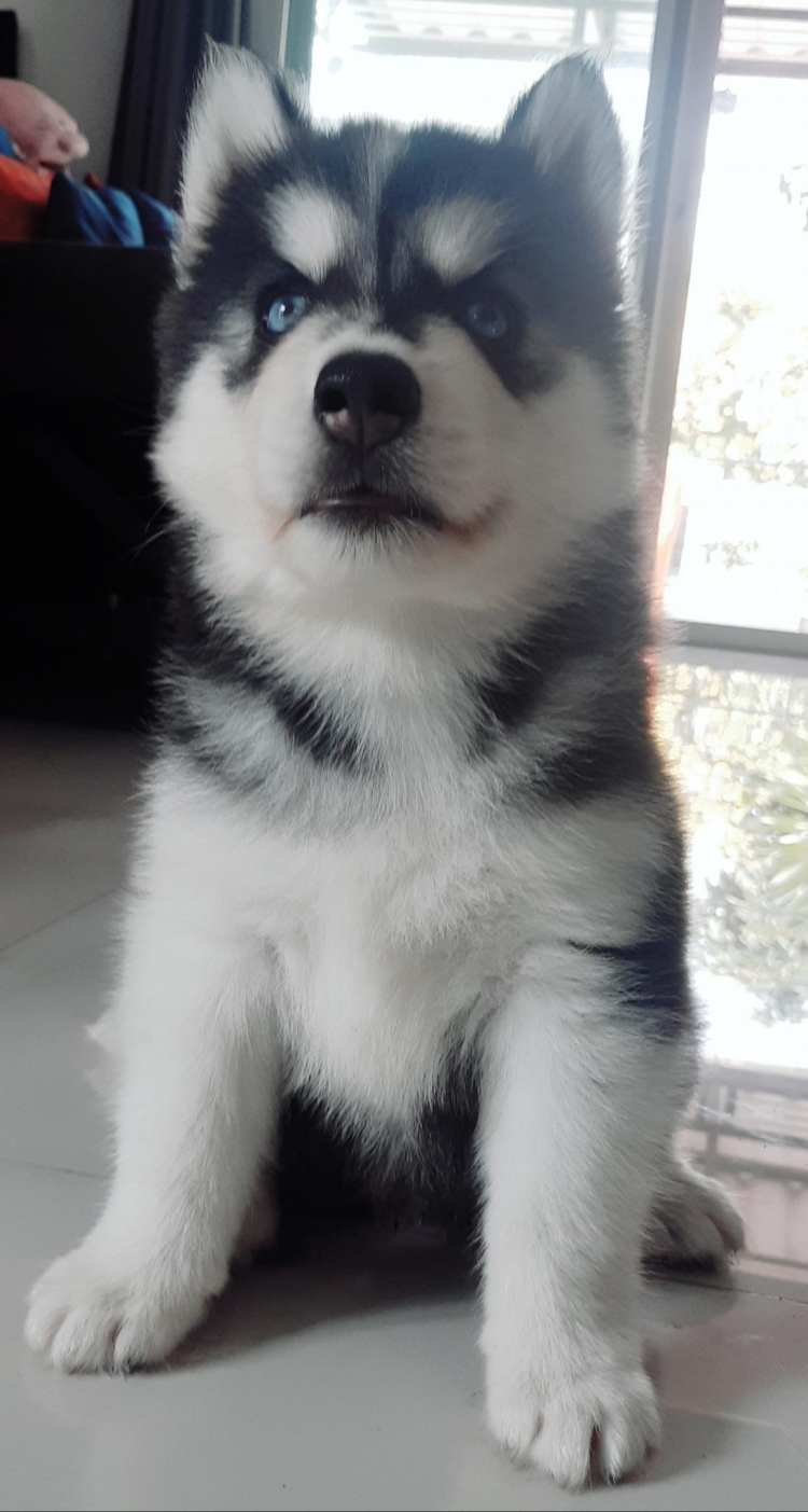 ไซบีเรี้ยนวู้ดลี่แท้ ตัวผู้ ตาสีฟ้าทั้ง 2 ข้าง น้องอายุ 45 วัน