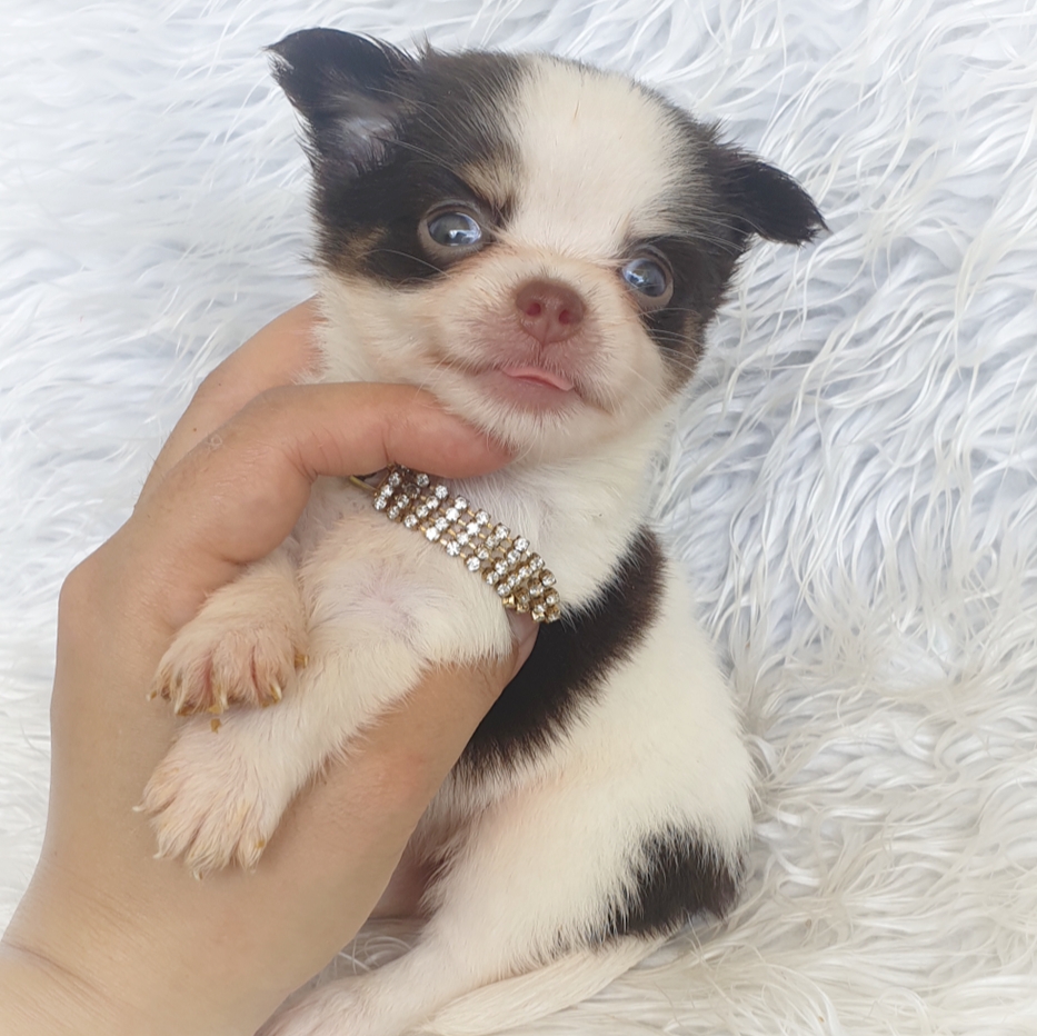 LITTLE DOG'S FARM : สาวน้อยชิวาวาขนยาว สีแฟนซีขาว-ช็อคโกแลต น่ารักจ้า