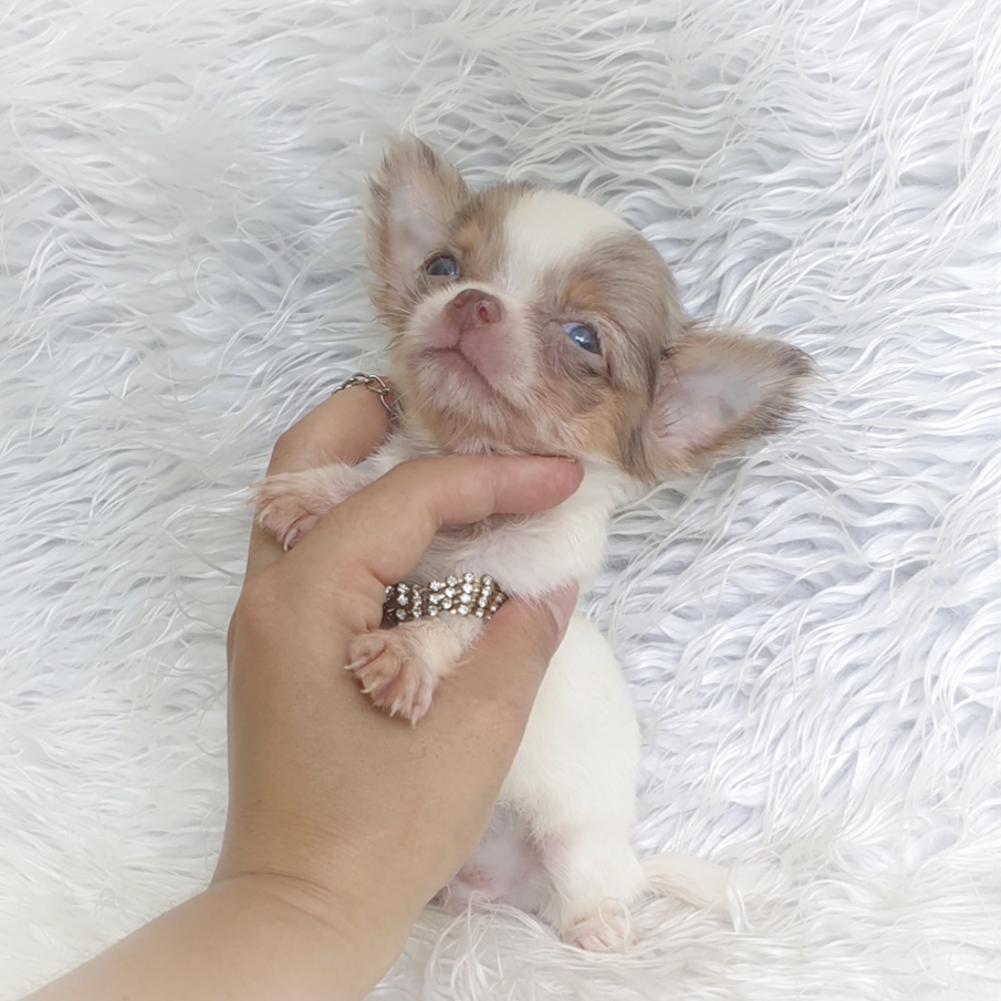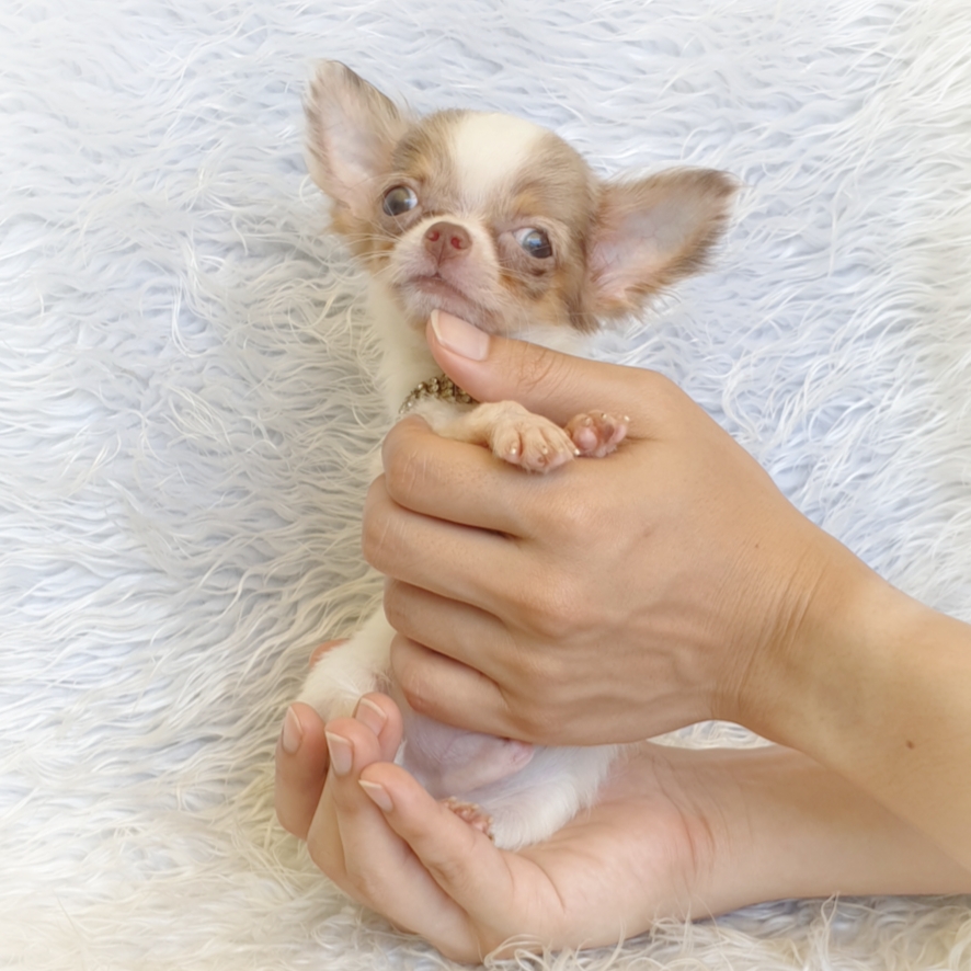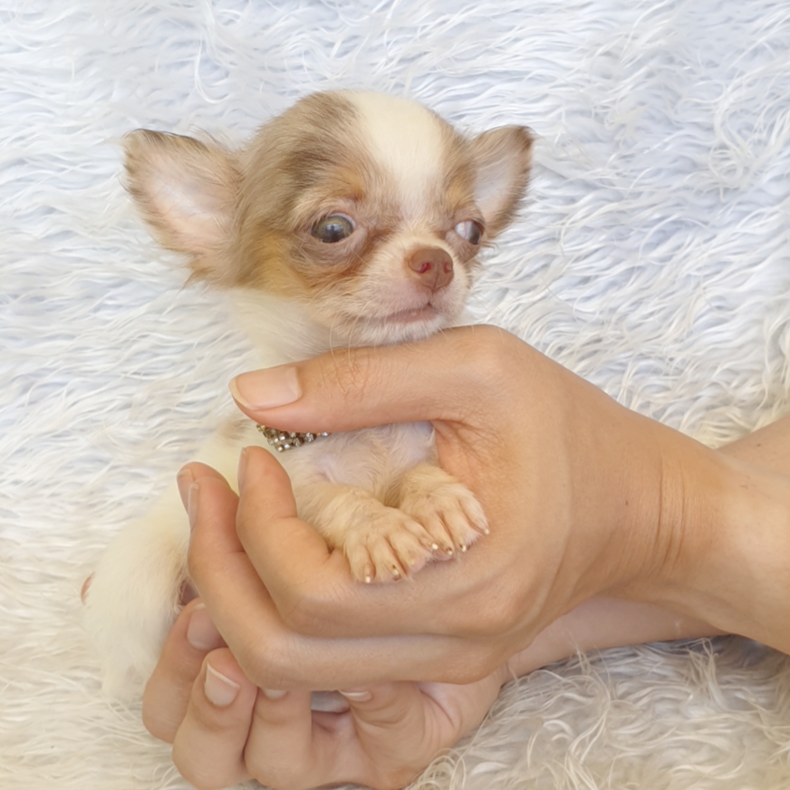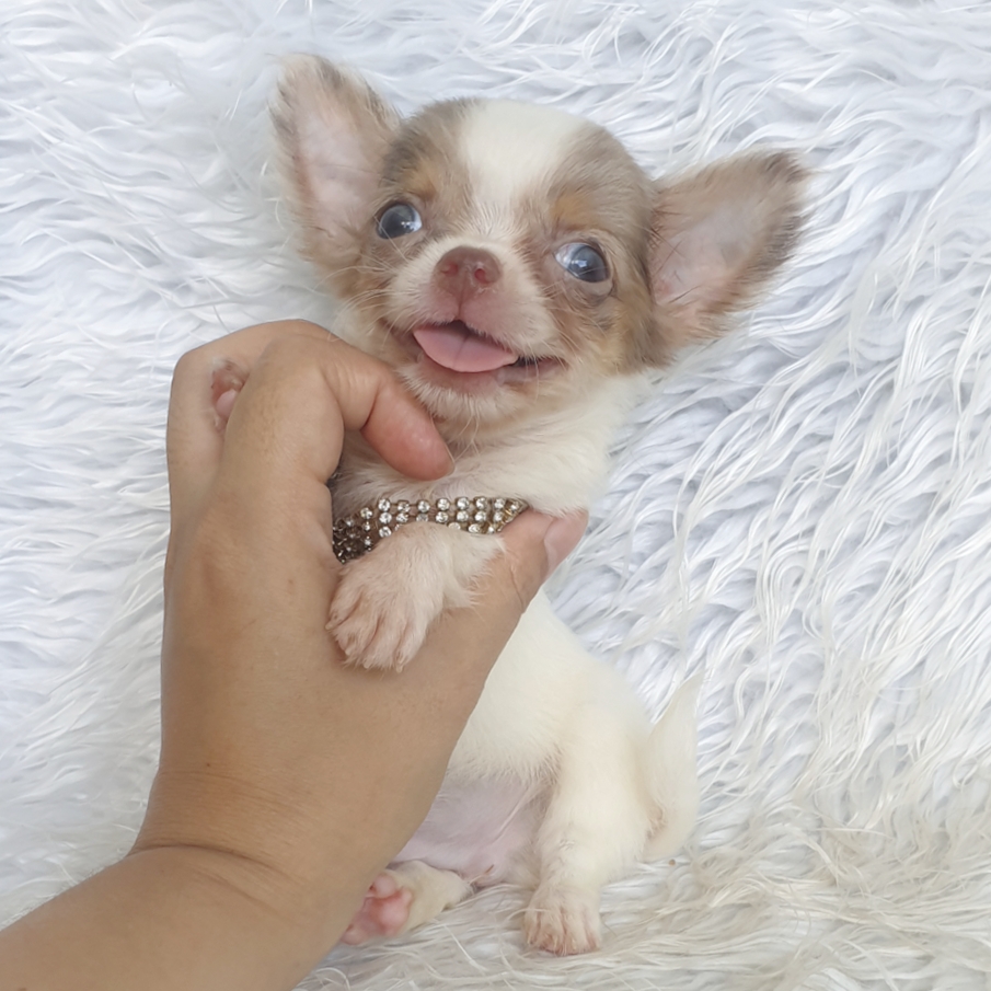 LITTLE DOG'S FARM : ❌RESERVED❌ หนุ่มน้อยชิวาวาขนยาว ตัวจิ๋วๆ สีแฟนซีขาว-ช็อคเมอเร่ น่ารักๆจ้า