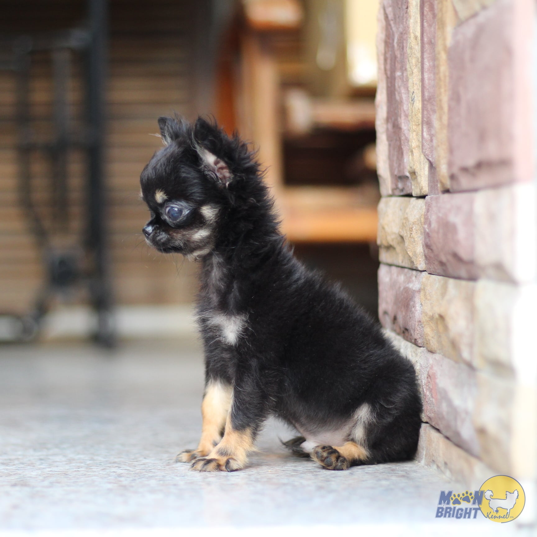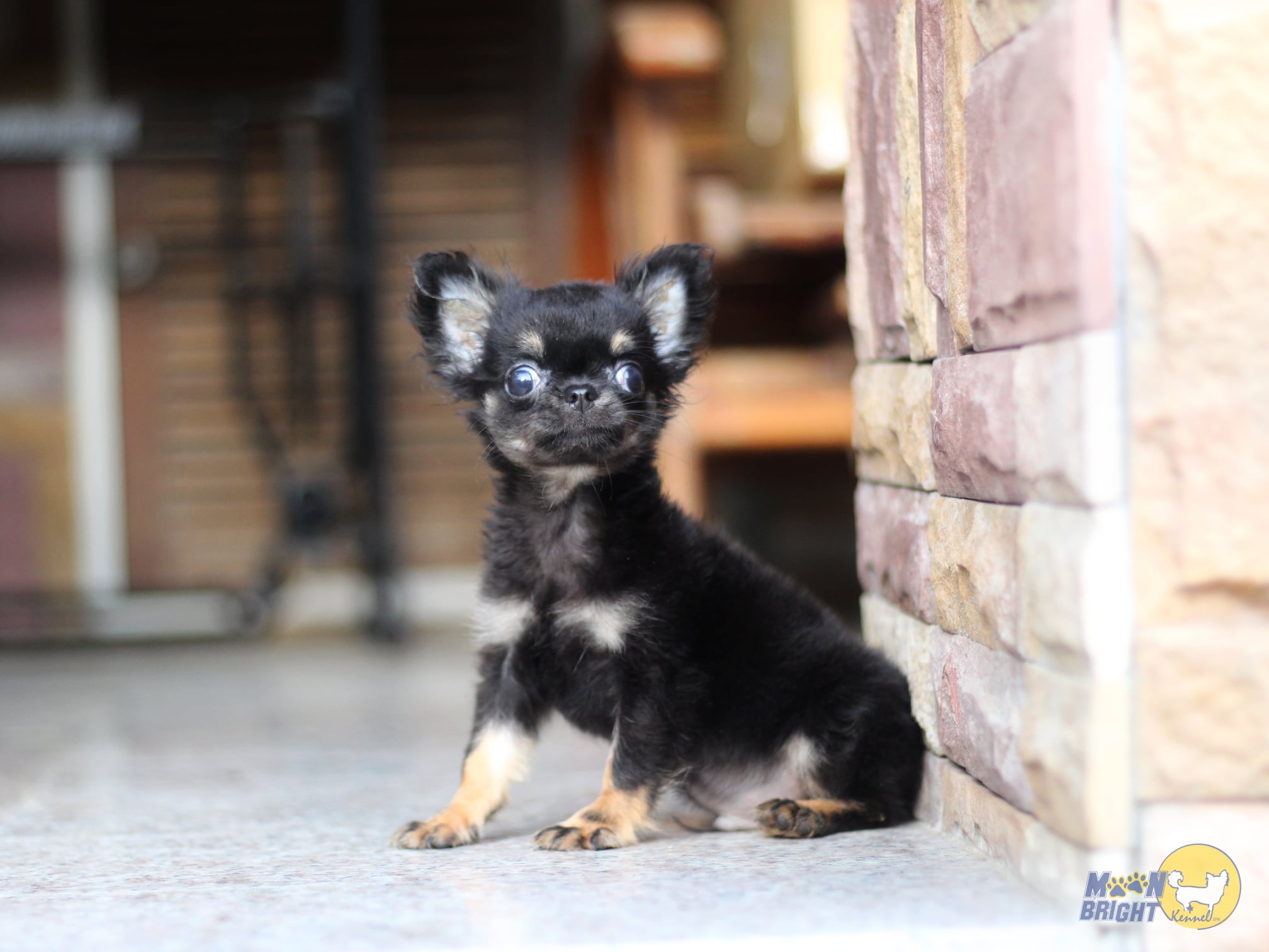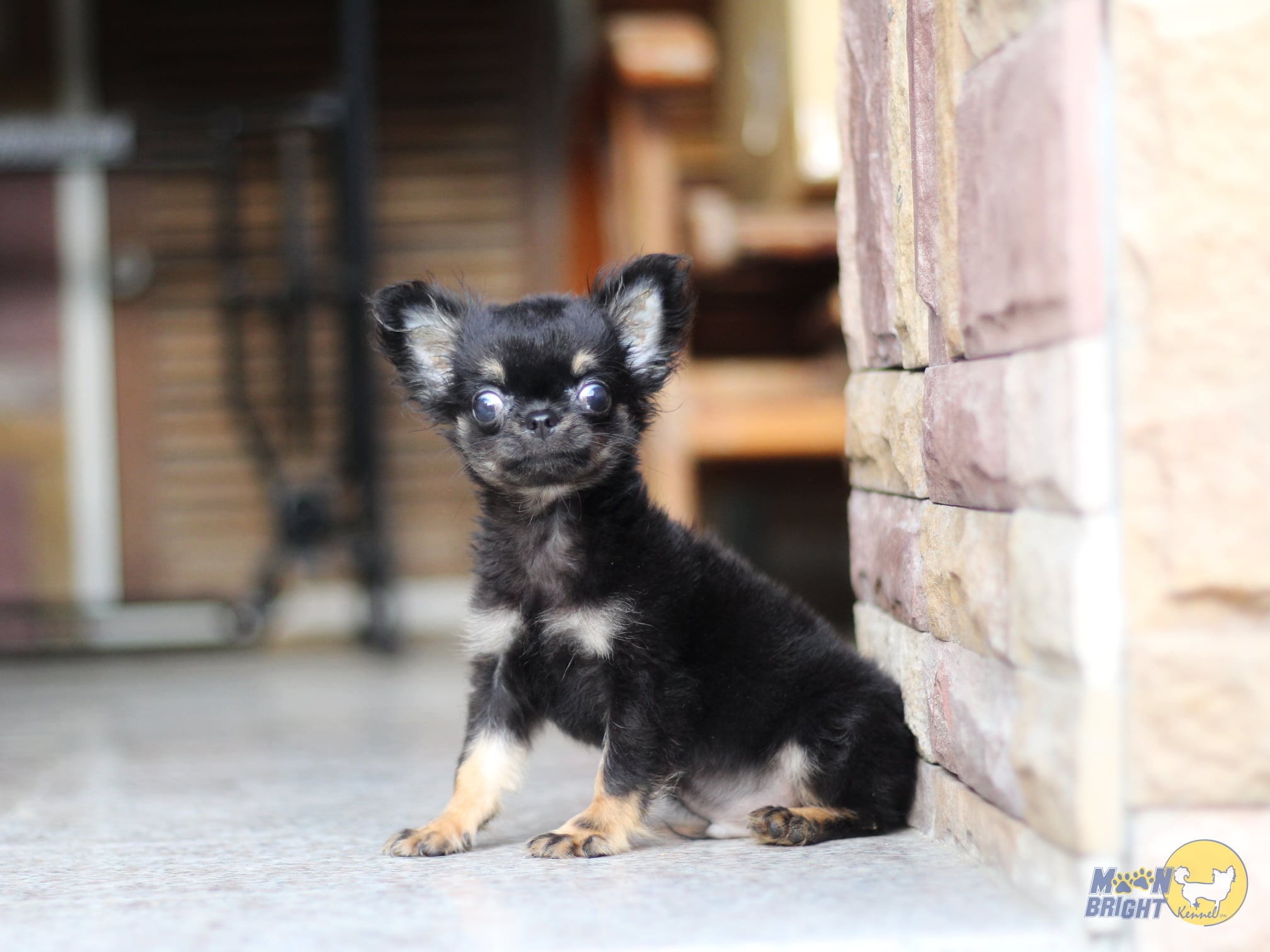 (MOONBRIGHT KENNEL)โปรโมชั่นมาแล้ว!!! เมสันบอย ชิวาวาขนยาวผิวสี หน้าสั้น สายเลือดดี มีใบเพด
