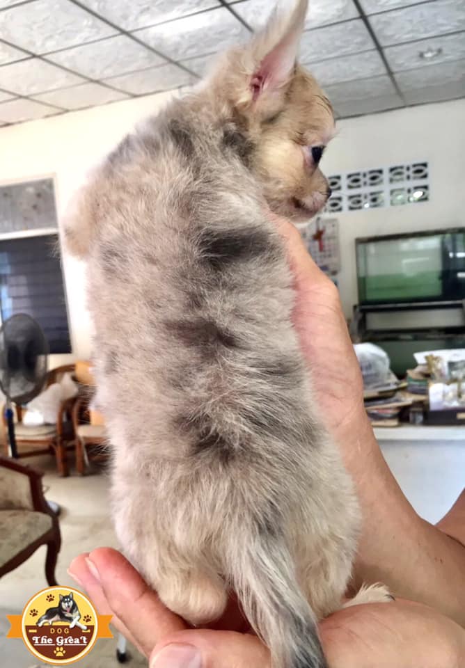 ชิวาวาเพศเมีย ขนยาว สีเมอร์ (Merle Female) ไซส์เล็ก ตัวเล็ก พร้อมย้ายบ้านค่ะ