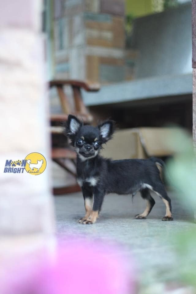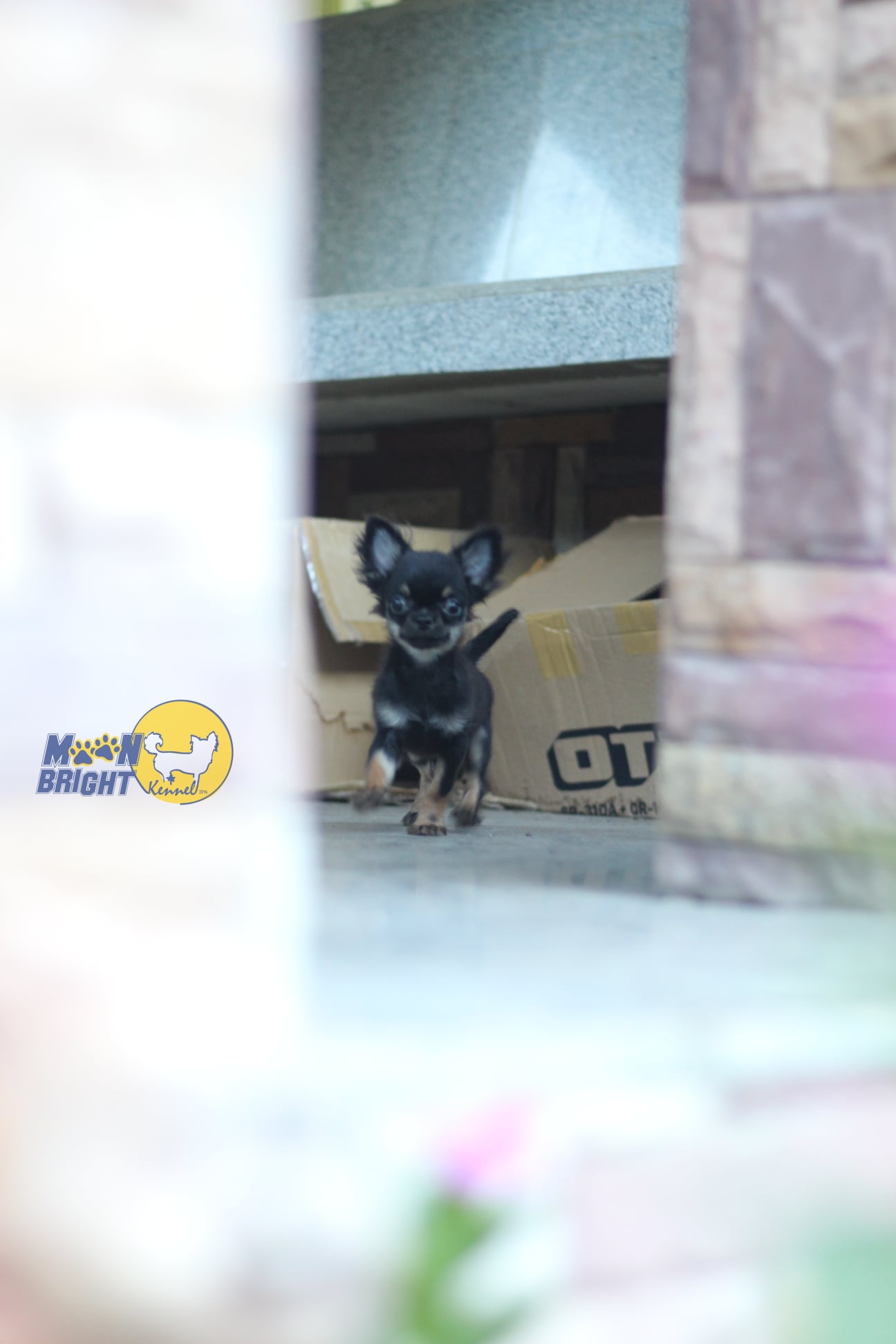 (MOONBRIGHT KENNEL) โปรโมชั่นสุดปังหลักพัน ชิวาวาขนยาว ผิวเข้ม ตัวเล็กจิ๋วแบ๊วกรุบ ราคาเบา