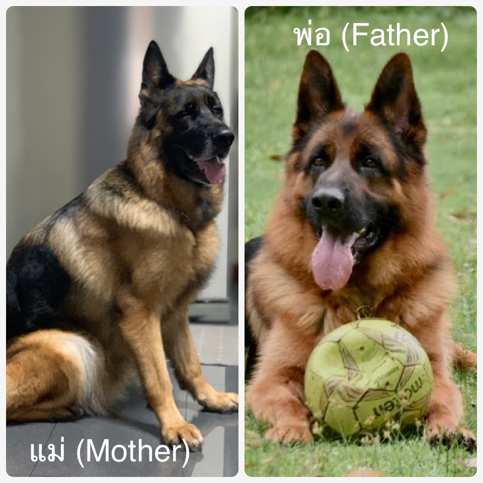 * พ่อ-แม่ เป็นสุนัขนำเข้า ผ่านการสอบคัดพันธุ์และสอบเป็นสุนัขอารักขา 1 แล้ว