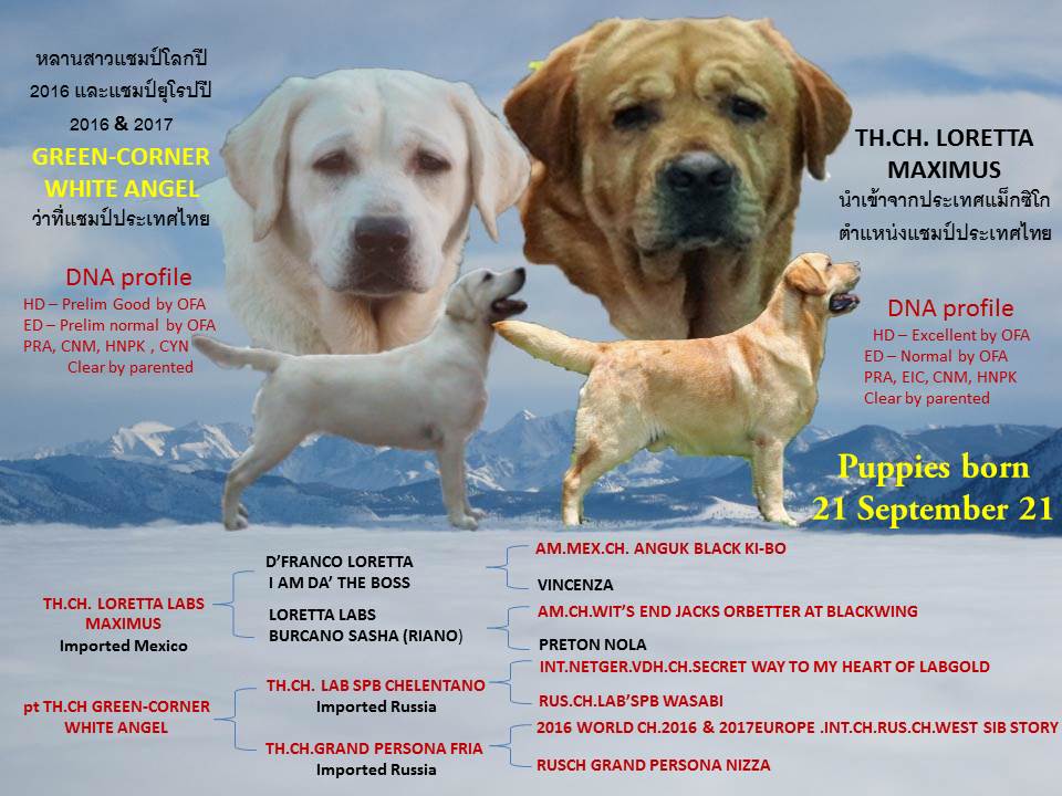 พ่อแม่: แม็กซิมัส กับ แองเจล ลูกสุนัขสีเหลือง เกิด 21 กันยายน 2564