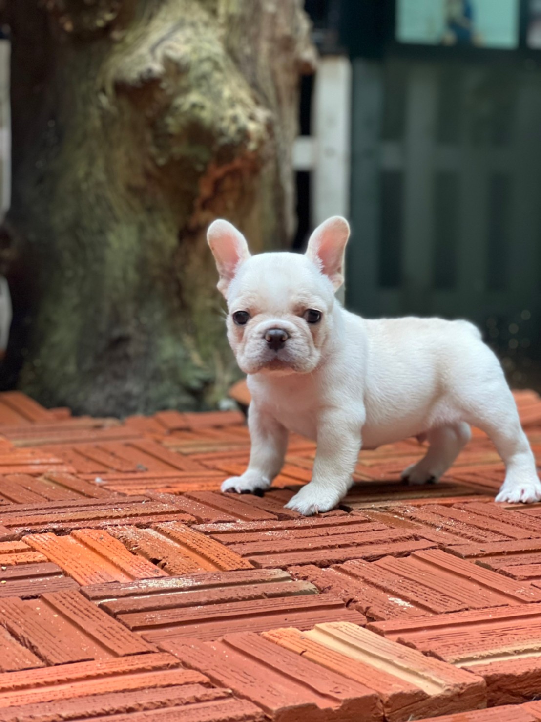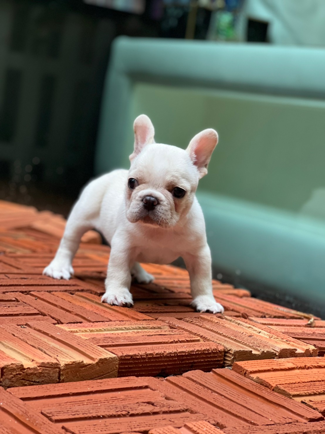เฟรนช์บลูด็อก เพศผู้ สีครีม หน้าสั้น ใบหูสั้น ขี้เล่น น่ารัก ทรงสวย อายุ 2 ดือน