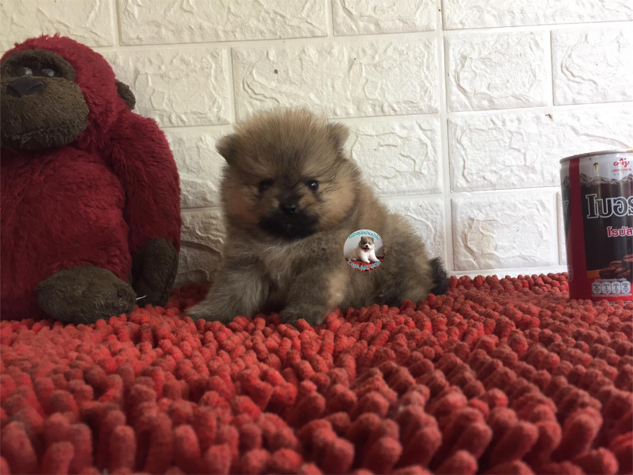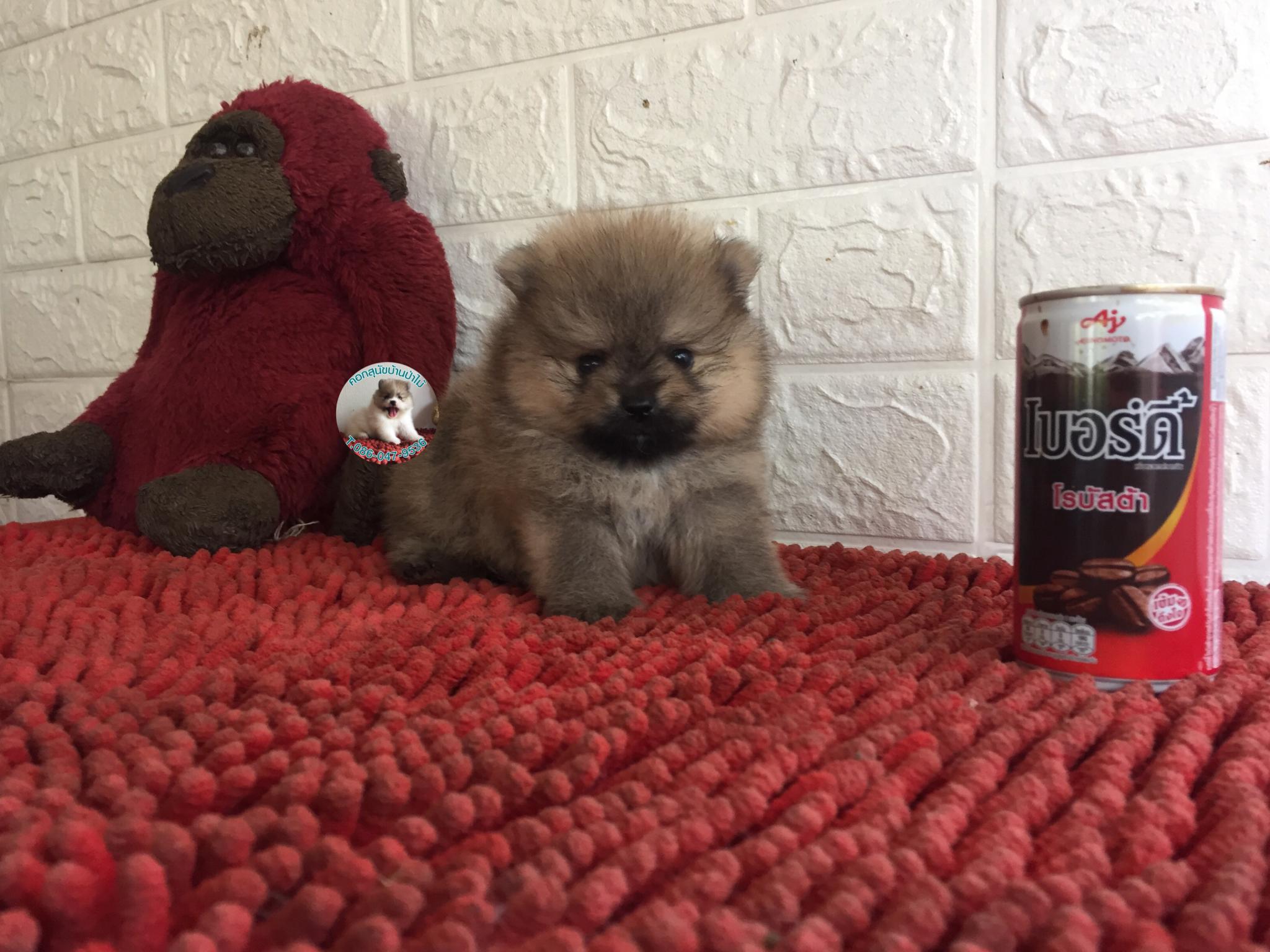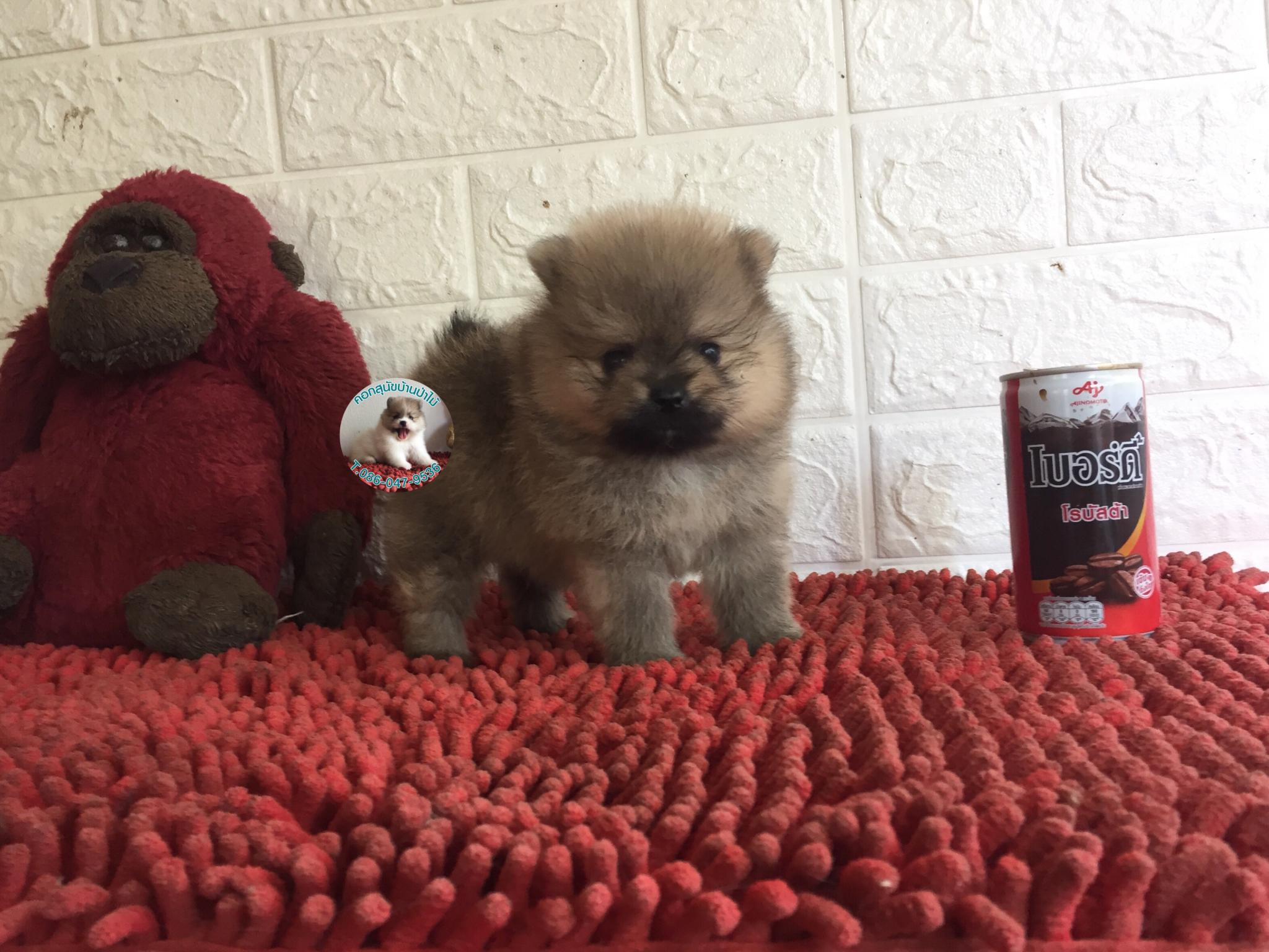 ลูกปอมตัวผู้สีน้ำตาล ขนแน่นตัวกลมสั้น พกพาสะดวก ราคาต่อรองได้ค่ะ