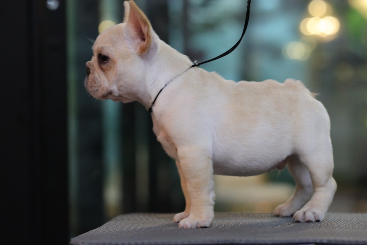 เฟรนช์บลูด็อก เพศผู้ สีครีม หน้าสั้น ใบหูสั้น ขี้เล่น น่ารัก ทรงสวย อายุ 2 ดือน