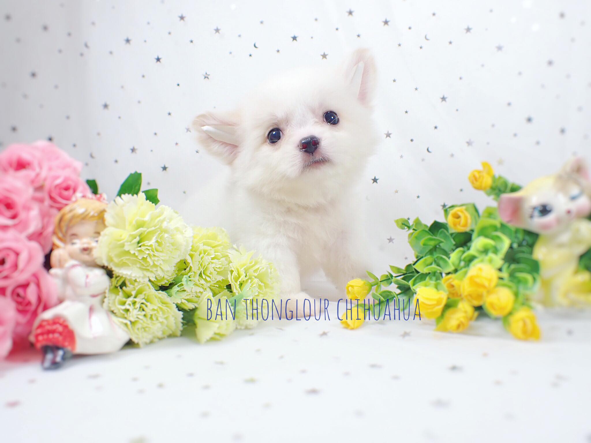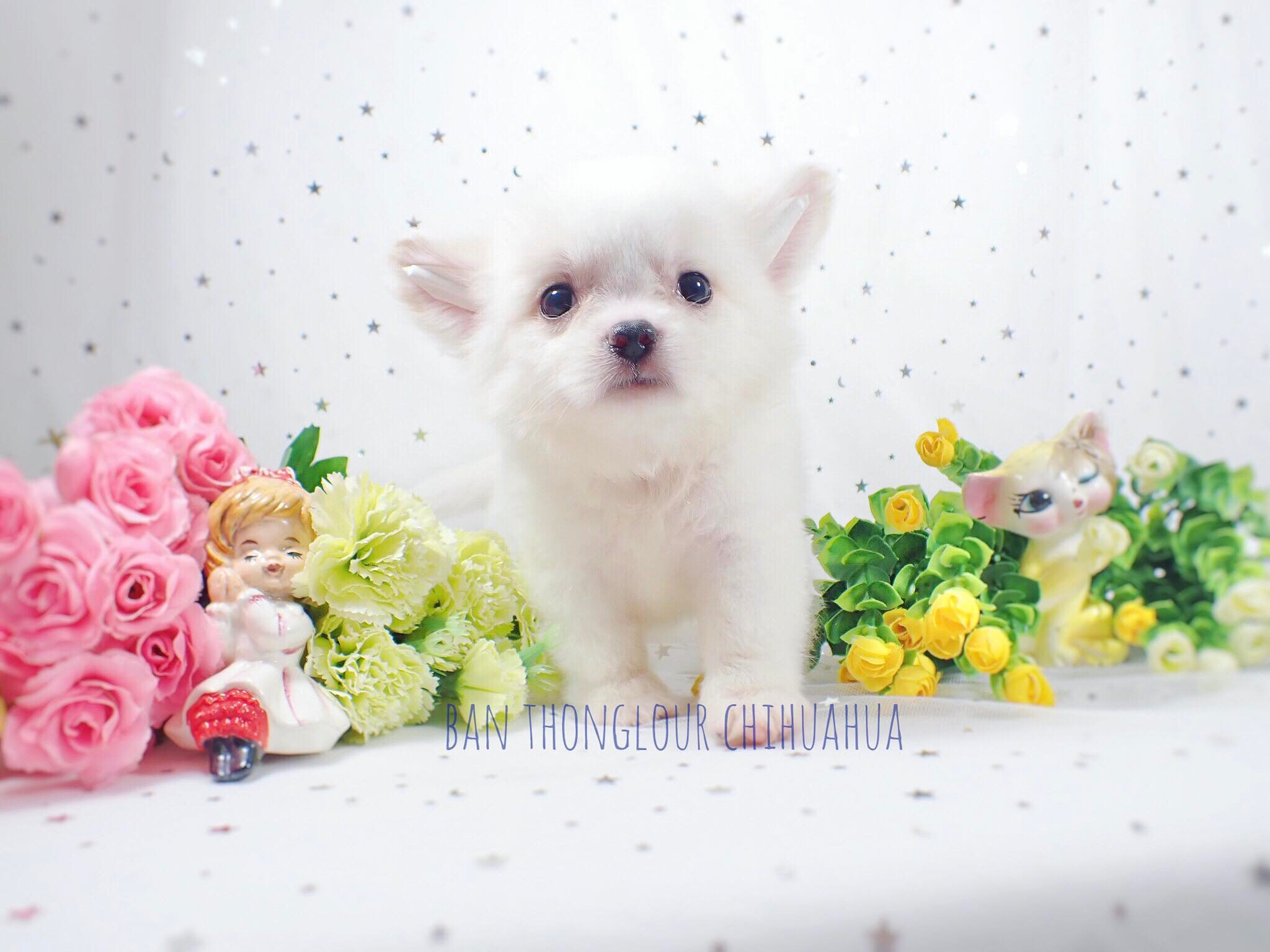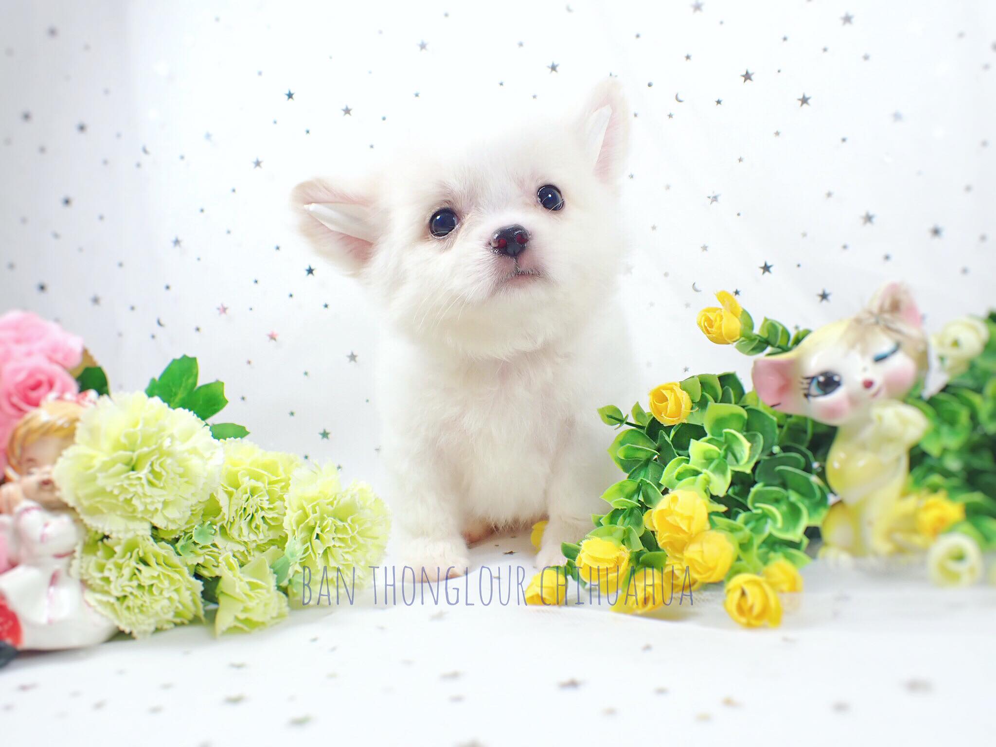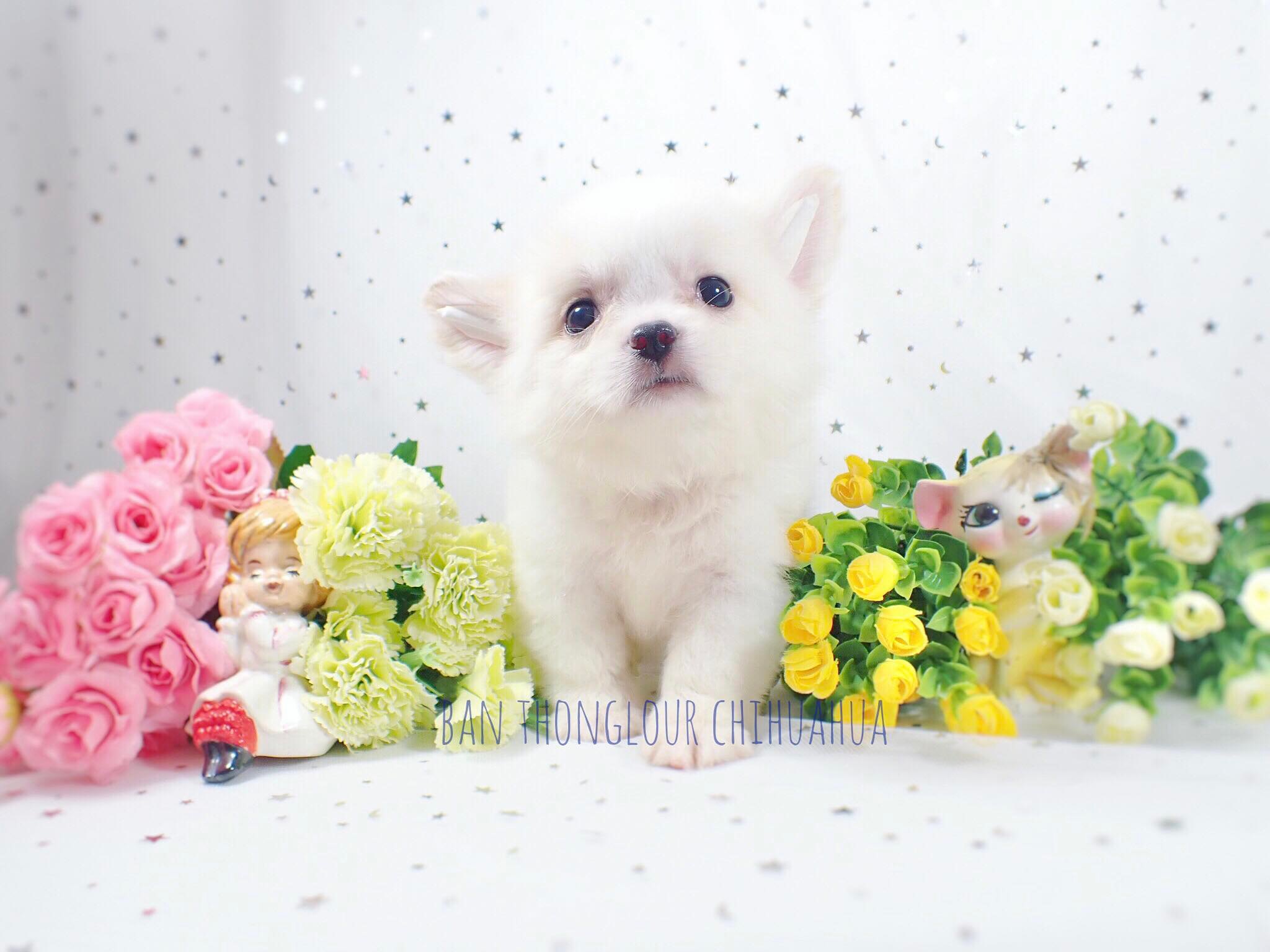 ((บ้านทองเหลาชิวาวา )) เปิดจอง ดช.คุมะ สีขาวสะอาดตา หน้ากลม ขนแน่นฟู ตาแป๋วๆ