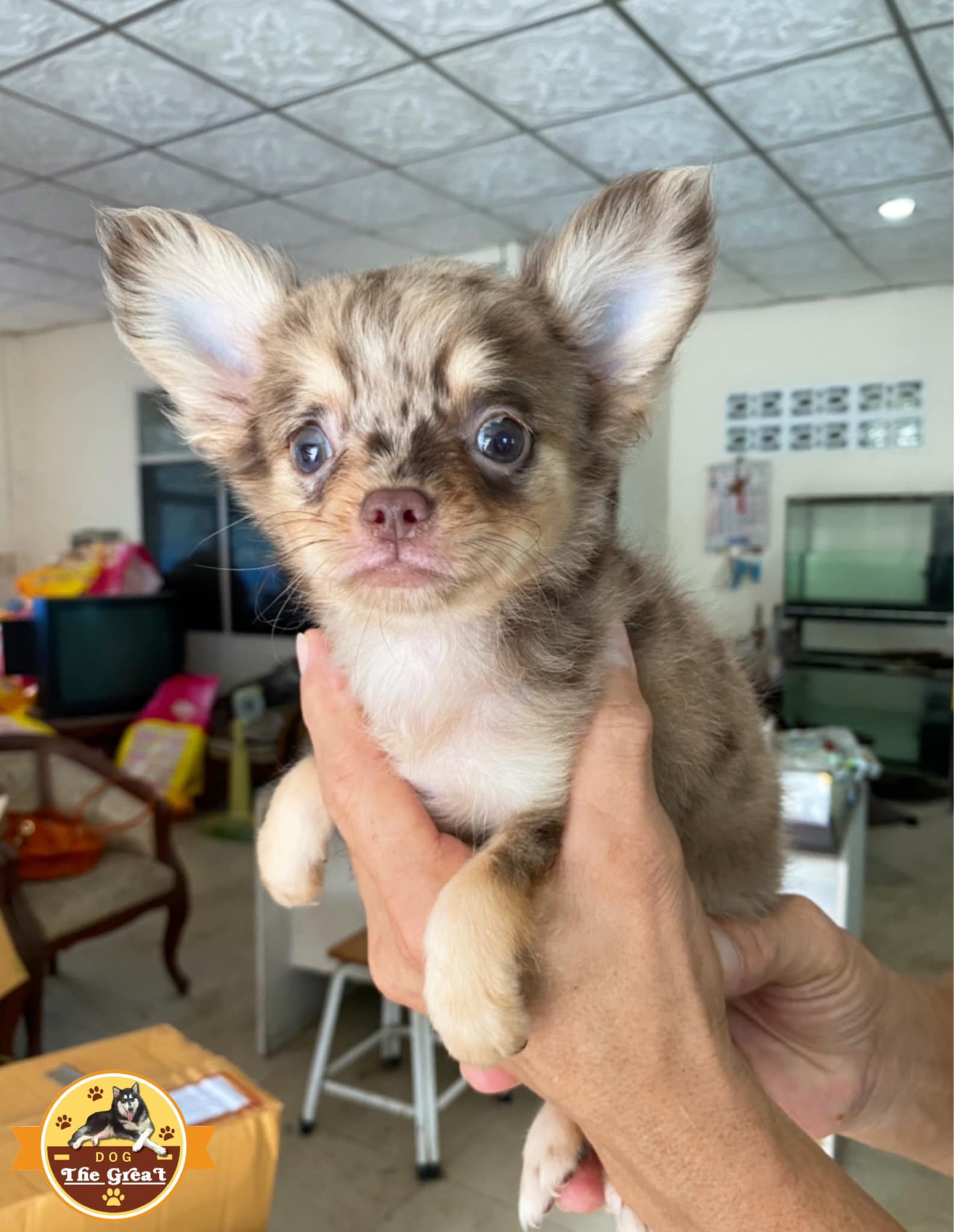 ชิวาวาเด็กหญิง ขนยาว สีชอคเมอร์แทน (Choc Merle Tan Female) น่ารักสุดดดดด