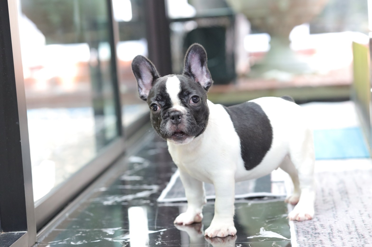 เฟรนช์บลูด็อก เพศผู้ สีขาวคำ หน้าสั้น ใบหูสั้น ขี้เล่น น่ารัก ทรงสวย อายุ 2 ดือน เฟรนช์บลูด็อก เพ เ