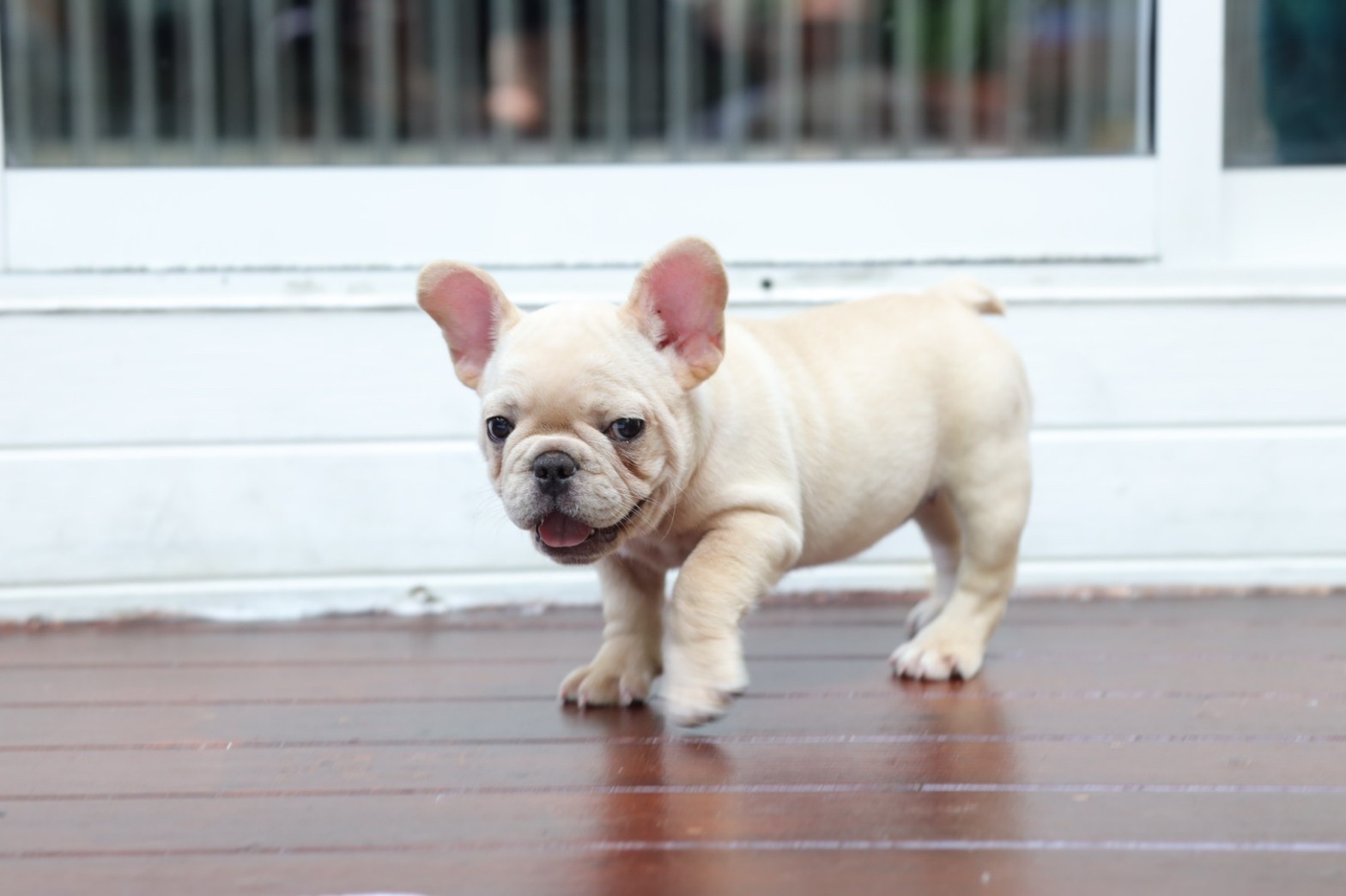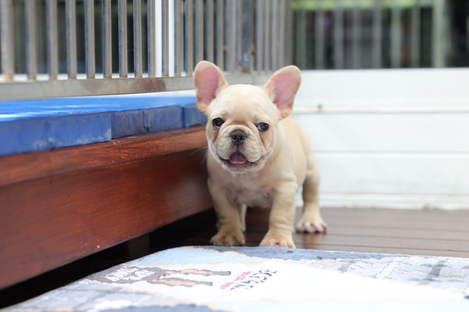 เฟรนช์บลูด็อก เพศเมีย สีครีม หน้าสั้น ใบหูสั้น ขี้เล่น ทรงสวย อายุ 2 ดือน เฟรนช์บลูด็อก เฟรนช เฟรน