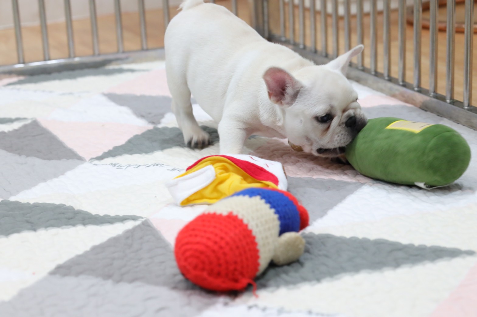 เฟรนช์บลูด็อก เพศผูั สีขาว หน้าสั้น ใบหูสั้น ขี้เล่น ทรงสวย อายุ 2 ดือน เฟรนช์บลูด็อก เฟรนช เฟรน