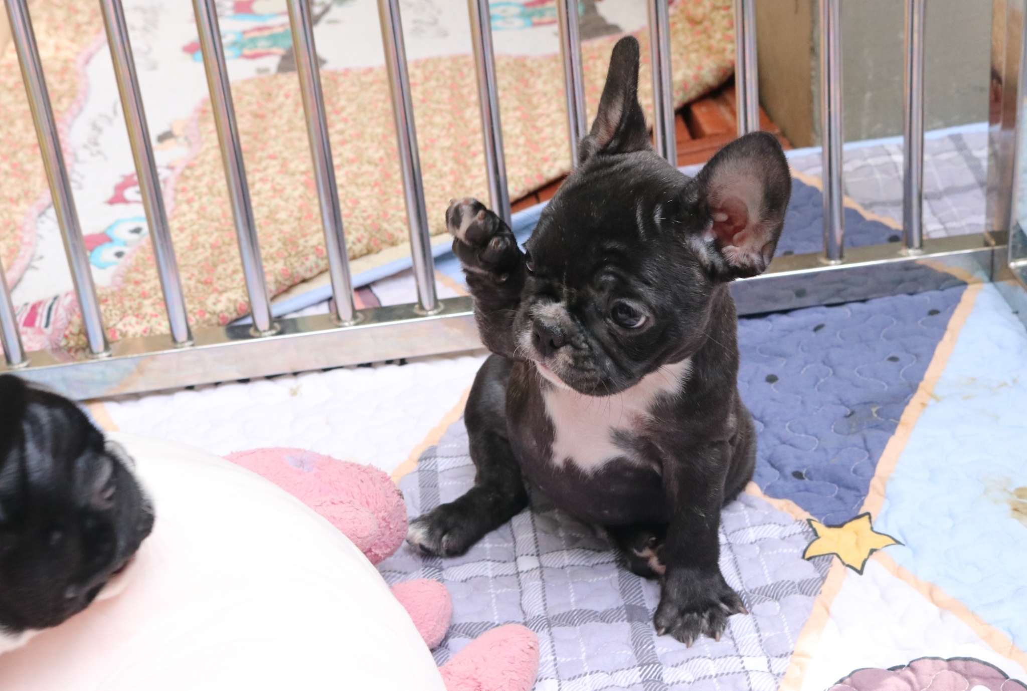 เฟรนช์บลูด็อก เพศเมีย สีขาวดำ หน้าสั้น ใบหูสั้น ขี้เล่น ทรงสวย อายุ2 ดือน เฟรนช์บลูด็อก เฟรนช เฟรน