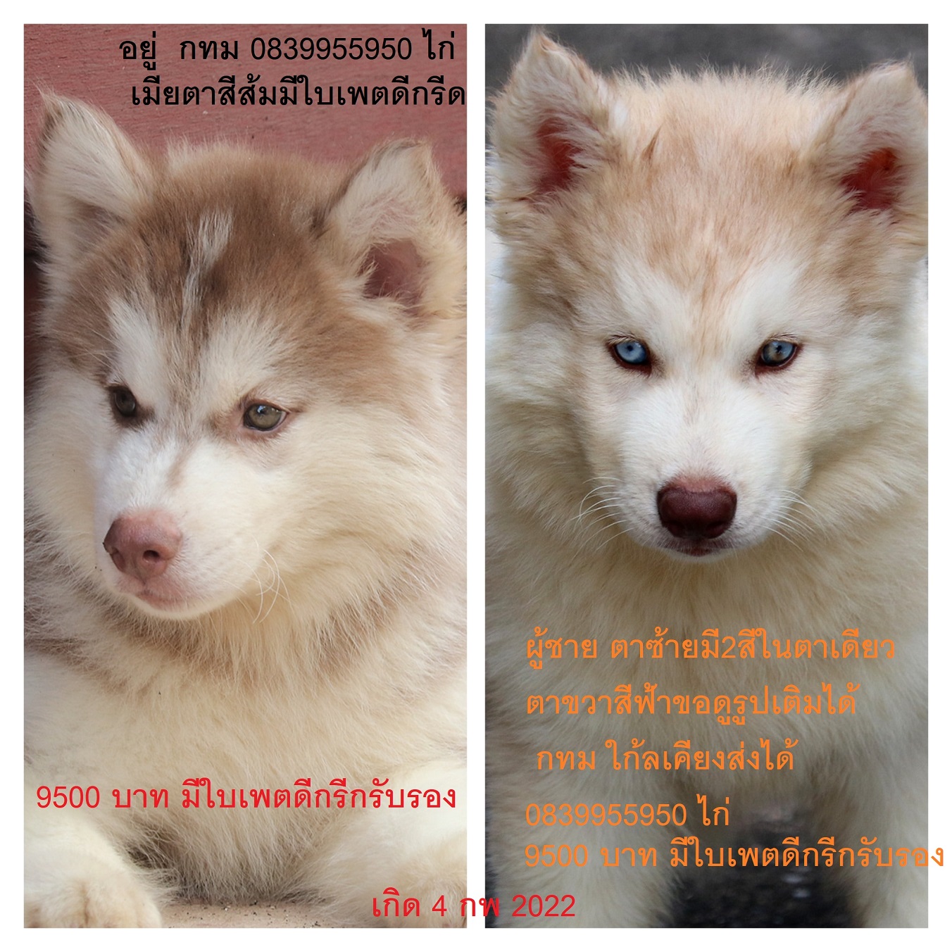 ขาย ไซบีเรียน ฮัสกี้, กทม มารับเองลดได้ครับ มีใบเพตดีกีรับลอง