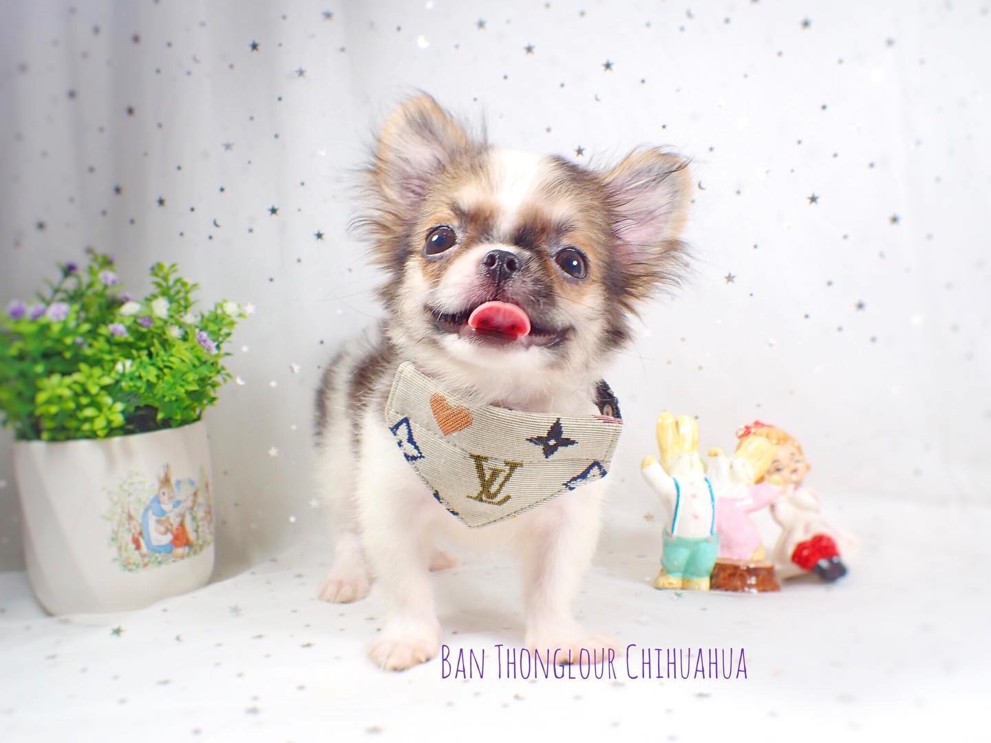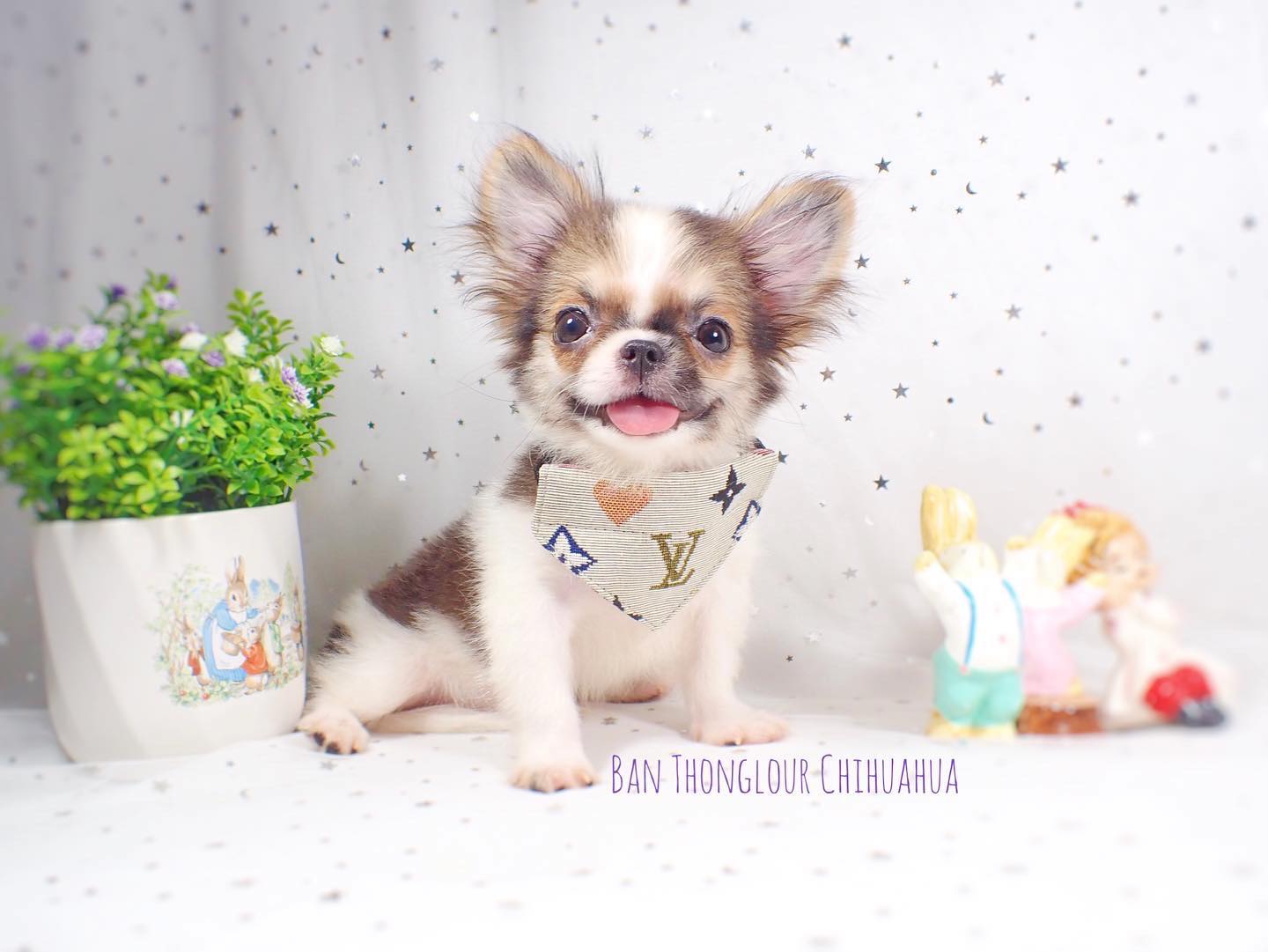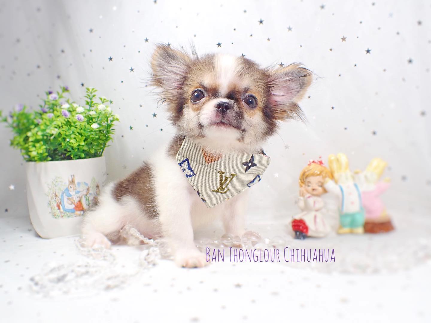 ((บ้านทองเหลา))เปิดจอง ดช.เดนิส ชิวาวาขนยาวสายไต้หวันเกรดพ่อพันธุ์ สีขาวน้ำตาล หัวกลมโต หน้าสั้นหัก