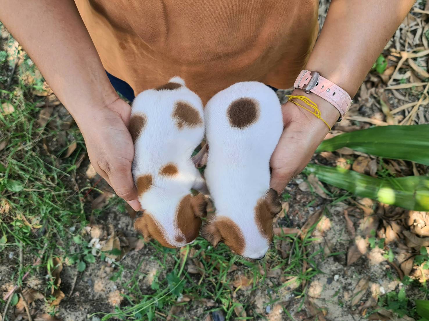ลูกแจ็ค รัสเซล ซนๆน่ารัก ลายสวยๆ สายพันธุ์แท้ อ้วน เตี้ยล่ำ ขาสั้น ทรงสวย เกรด A ชุดที่ 58 *หมด