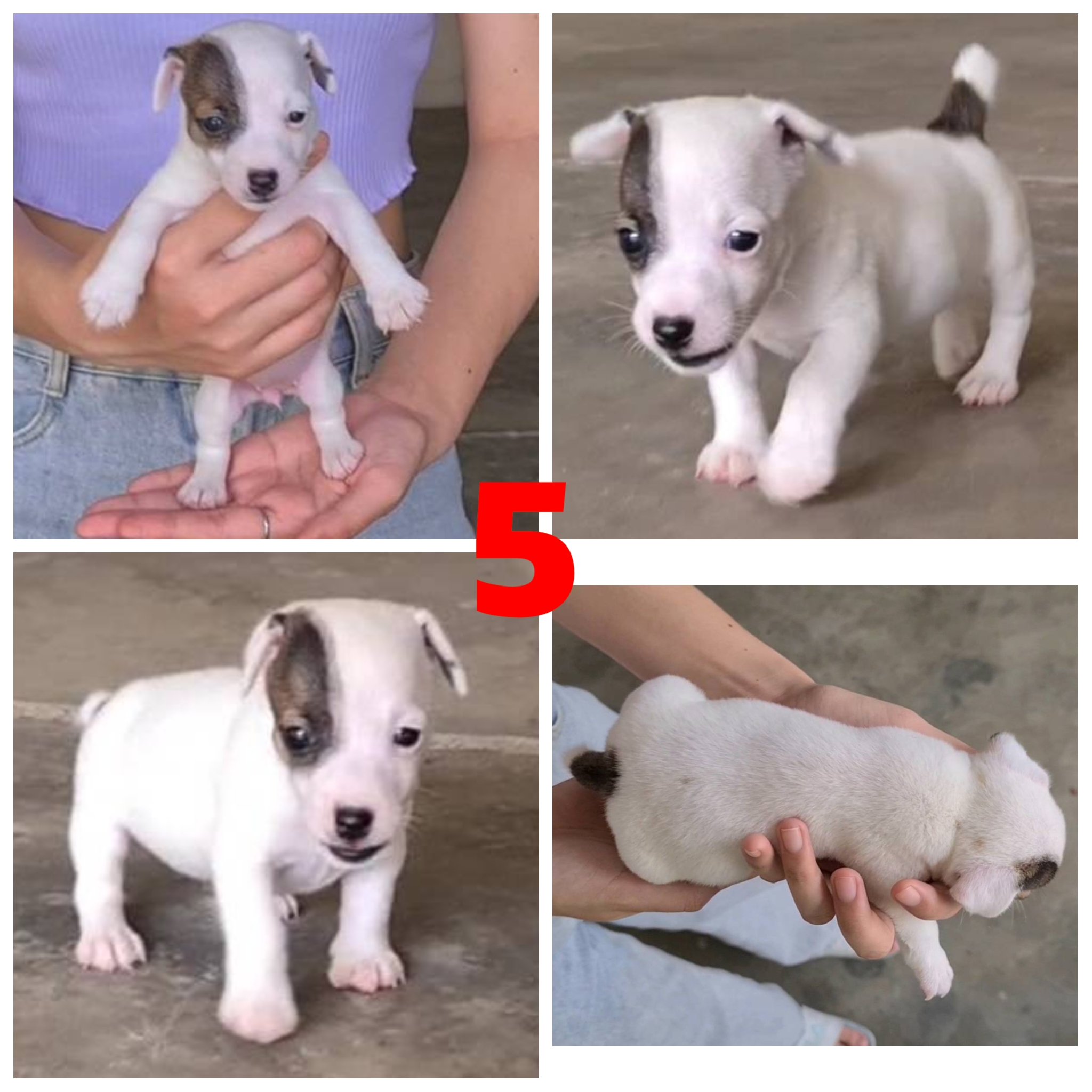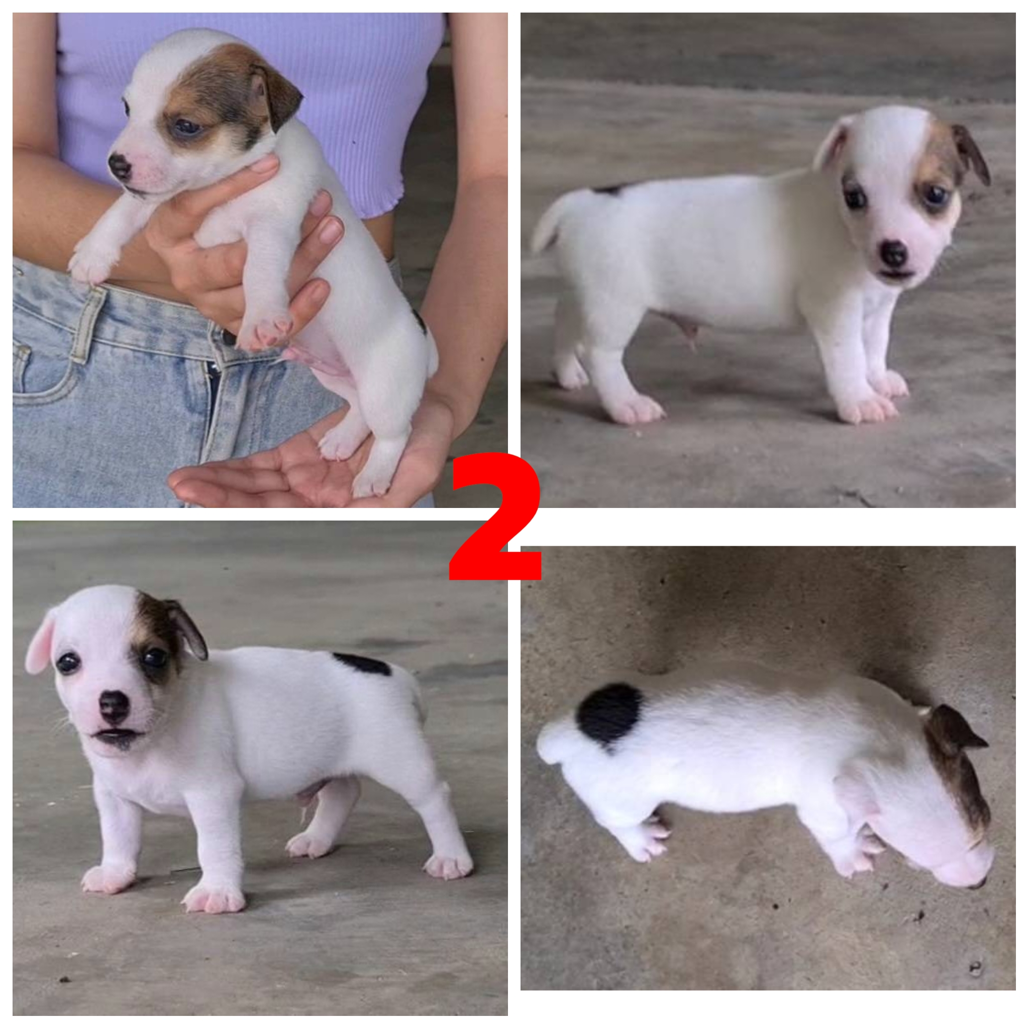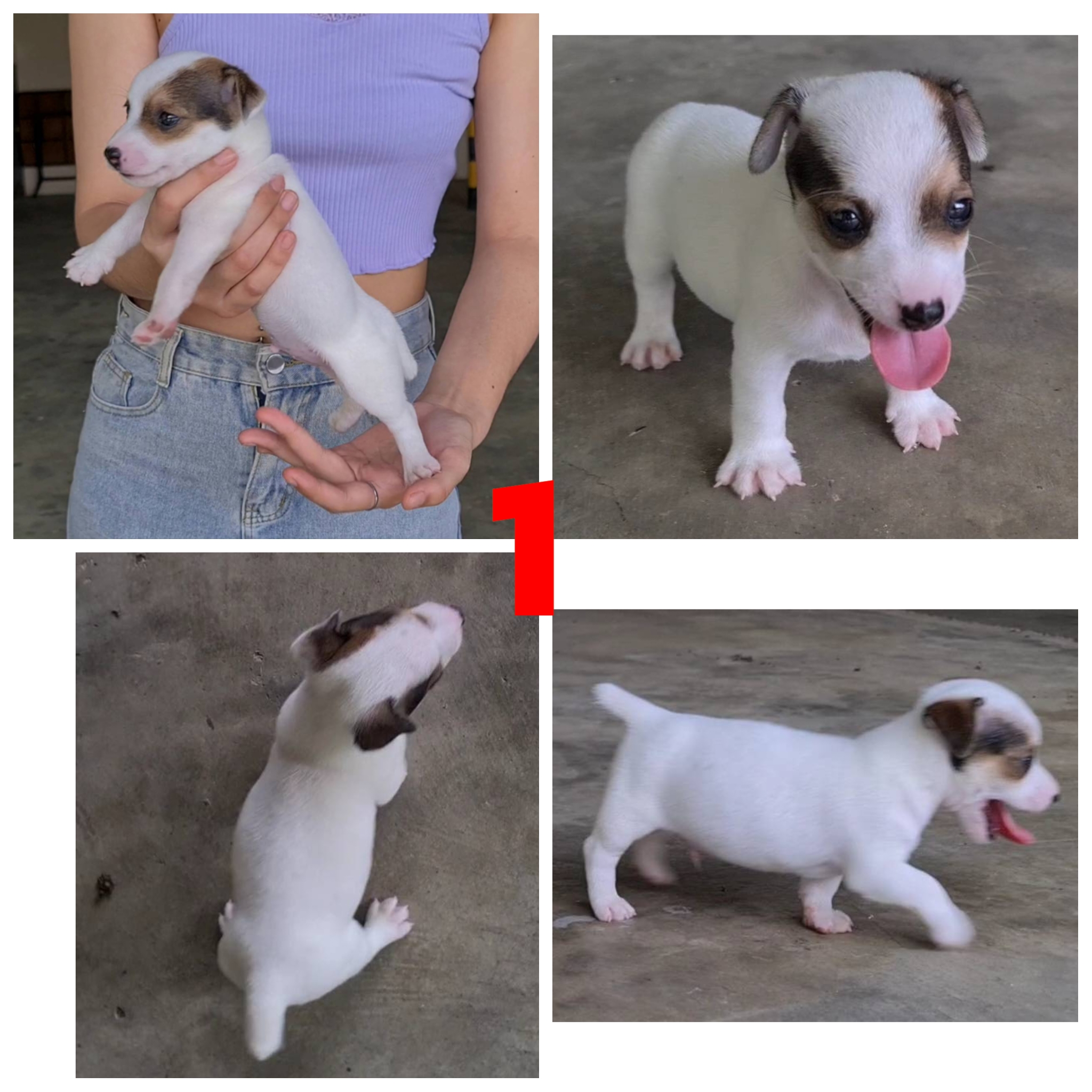 *** ค่าส่งฟรีทั่วประเทศ เบอร์ 1,2,3,4 เป็นเพศผู้ เบอร์ 5 เป็นเพศเมียครับ *** ลูกแจ็ค รัสเซล สายพันธุ์แท้ เกรด A ชุดที่ 59 จาก kankarnclub ลายสวยๆ สีสันสวยงาม น้องมาจากบ้านที่เพาะพันธุ์น้องหมาชนิดนี้โดยตรง เลี้ยงได้ถูกสุขลักษณะและอนามัย น้องๆน่ารักมาก เล่นเก่ง ร่าเริง สุขภาพสมบูรณ์ แข็งแรง เลี้ยงง่าย หย่านมเรียบร้อยแล้ว อาหารที่ใช้ได้มี สมาร์ทฮาร์ท,อัลโปร หรือเป็นเกรดพรีเมี่ยมอย่าง โรยัลคานิน หรือโพรแพลน หลังจากรับไปยินดีให้คำปรึกษาด้านการเลี้ยงทั่วไปได้ตลอดครับ ถ่ายพยาธิให้เรียบร้อยแล้ว ราคาขาย 6,500 B.เท่านั้น สนใจสอบถามรายละเอียดได้ที่เบอร์ Tel.085-074-0726 มารับเองได้ที่ ถ.รามอินทรา เขตบางเขน กรุงเทพฯ และมีบริการจัดส่งทั่วประเทศ (กันย์เจ้าเก่าครับ)