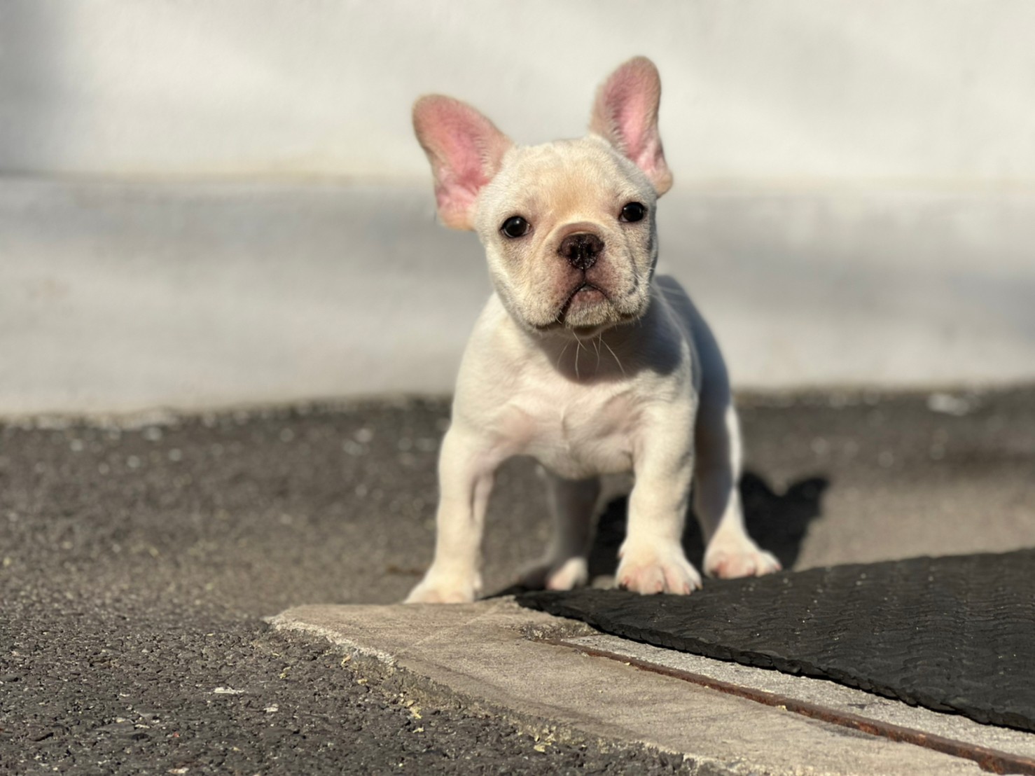 เฟรนช์บลูด็อก เพศผู้ สีครีมหน้าสั้น ใบหูสั้น ขี้เล่น ทรงสวย อายุ 2 ดือน เฟรนช์บลูด็อก เฟรนช เฟรน
