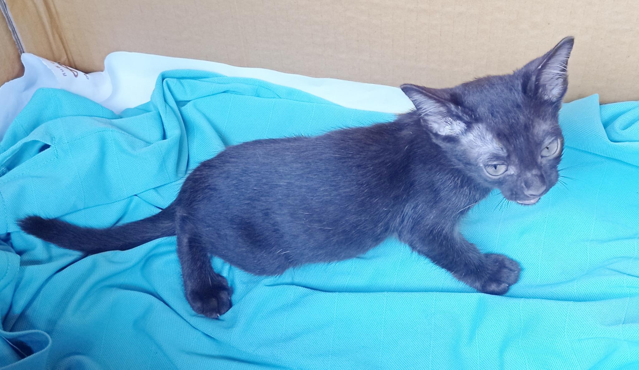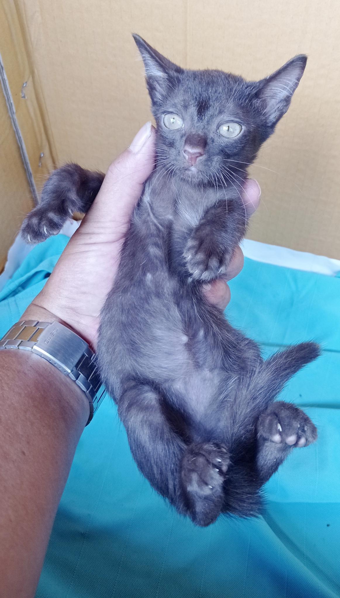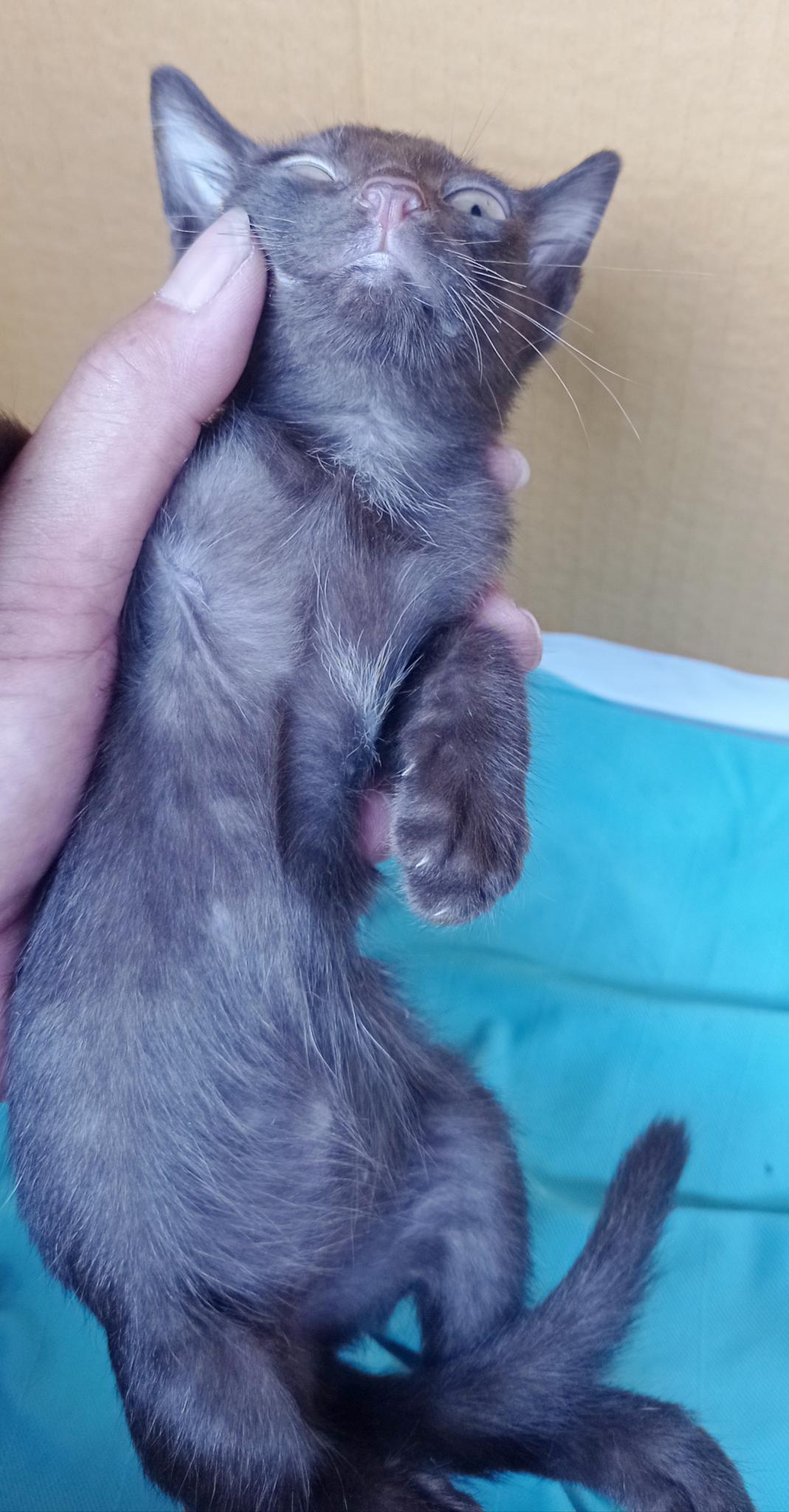 ลูกแมวสีน้ำตาลเข้ม อายุประมาณ 2เดือน เพศผู้ แบ่งกันไปเลี้ยง