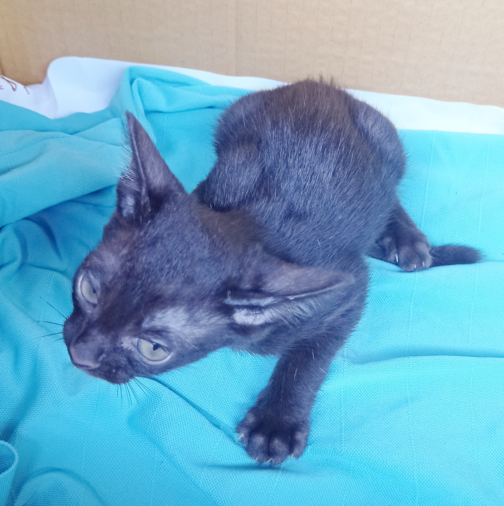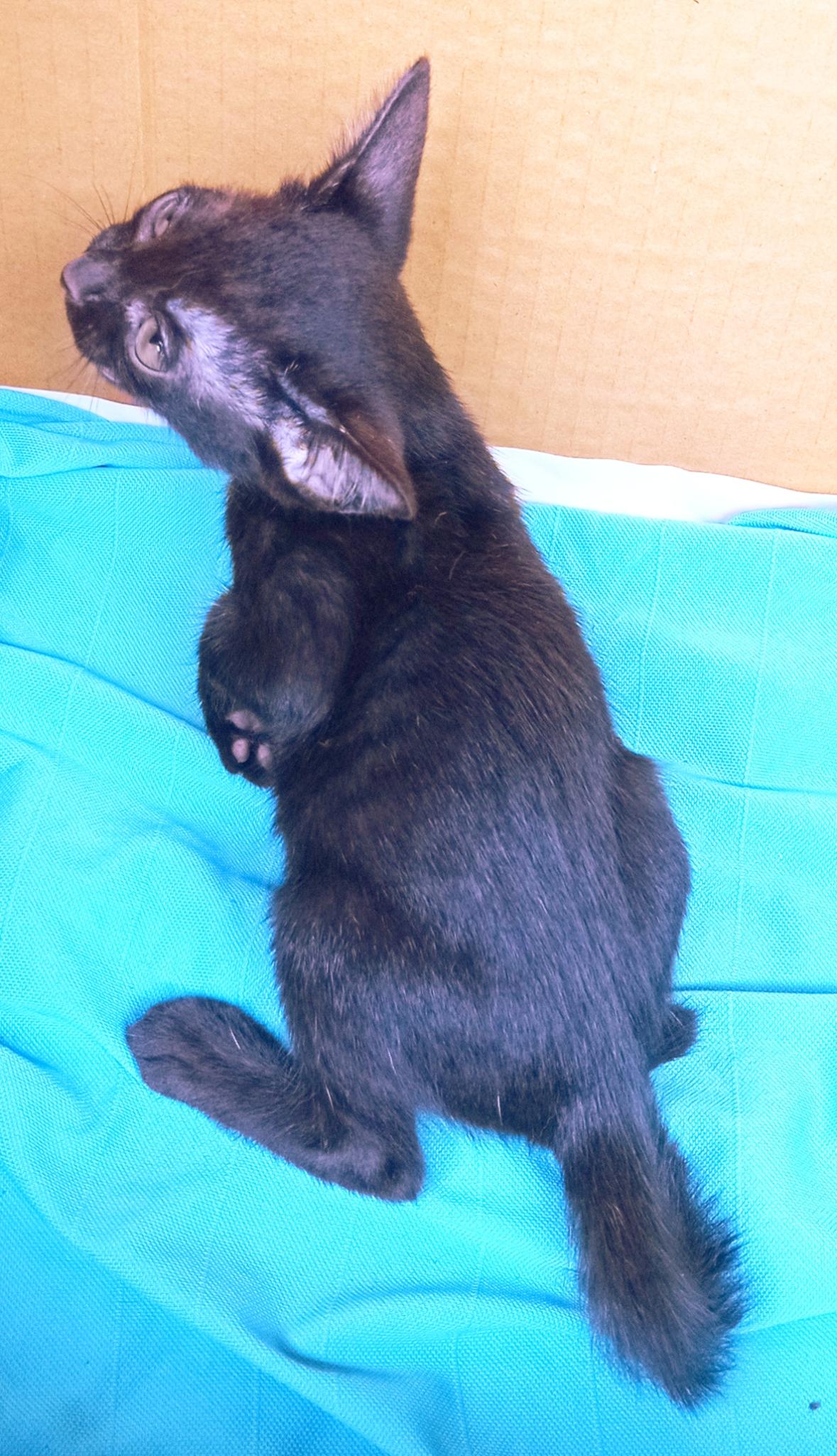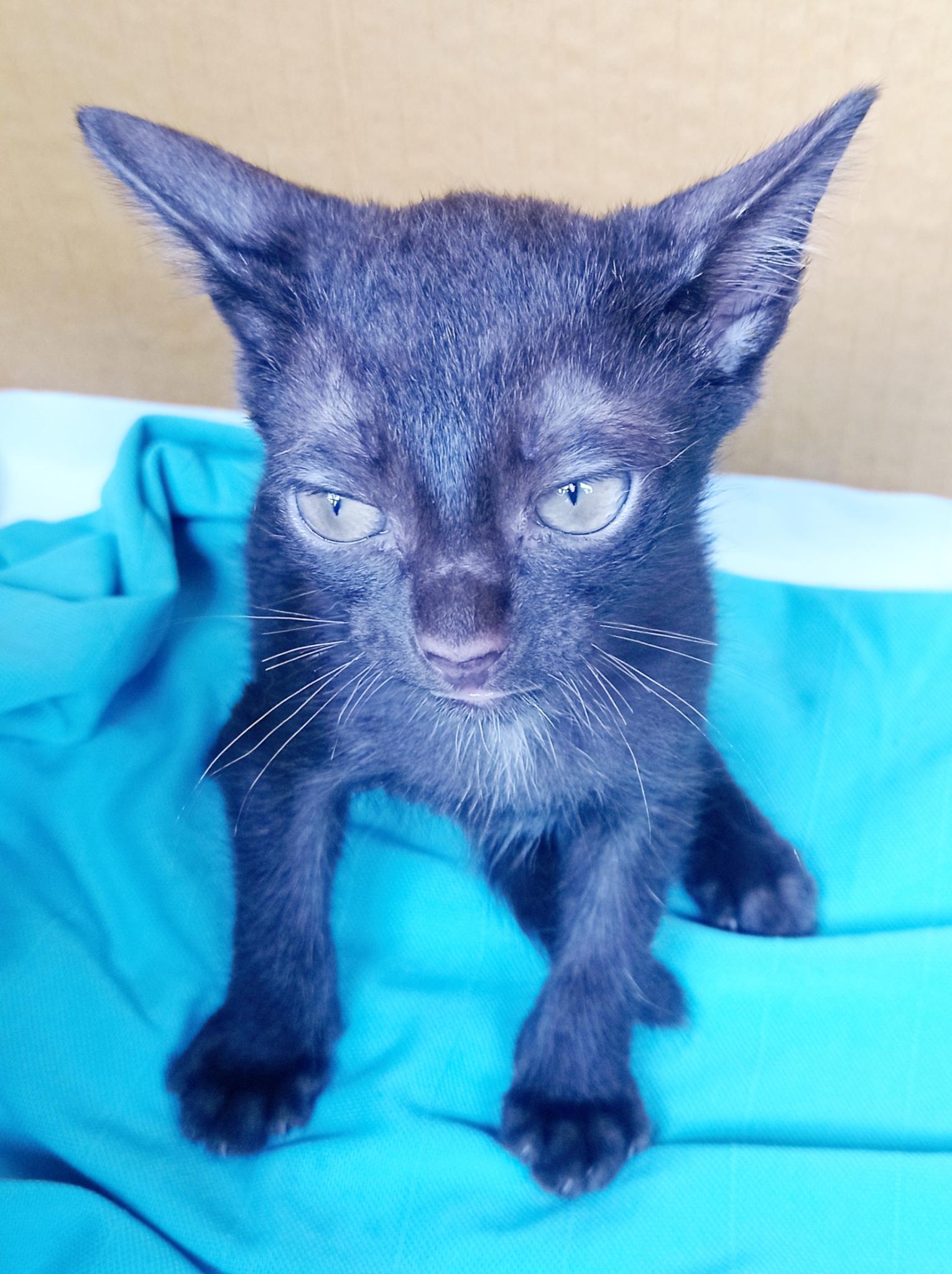 ลูกแมวสีน้ำตาลเข้ม อายุประมาณ 2เดือน เพศผู้ แบ่งกันไปเลี้ยง