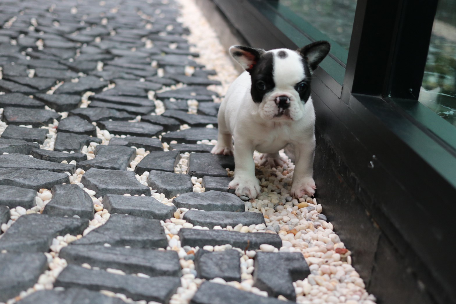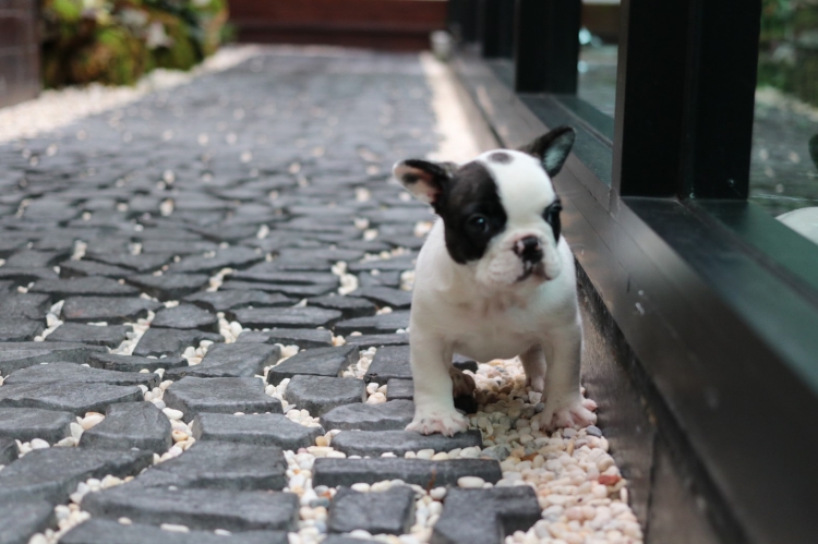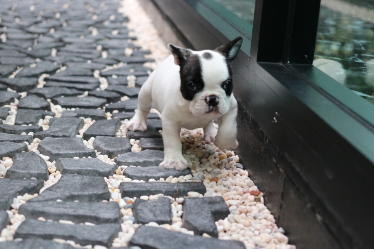 เฟรนช์บลูด็อก เพศเมีย สีขาวดำ หน้าสั้น ใบหูสั้น ขี้เล่น ทรงสวย อายุ 2 ดือน เฟรนช์บลูด็อก เฟรนช เฟรน