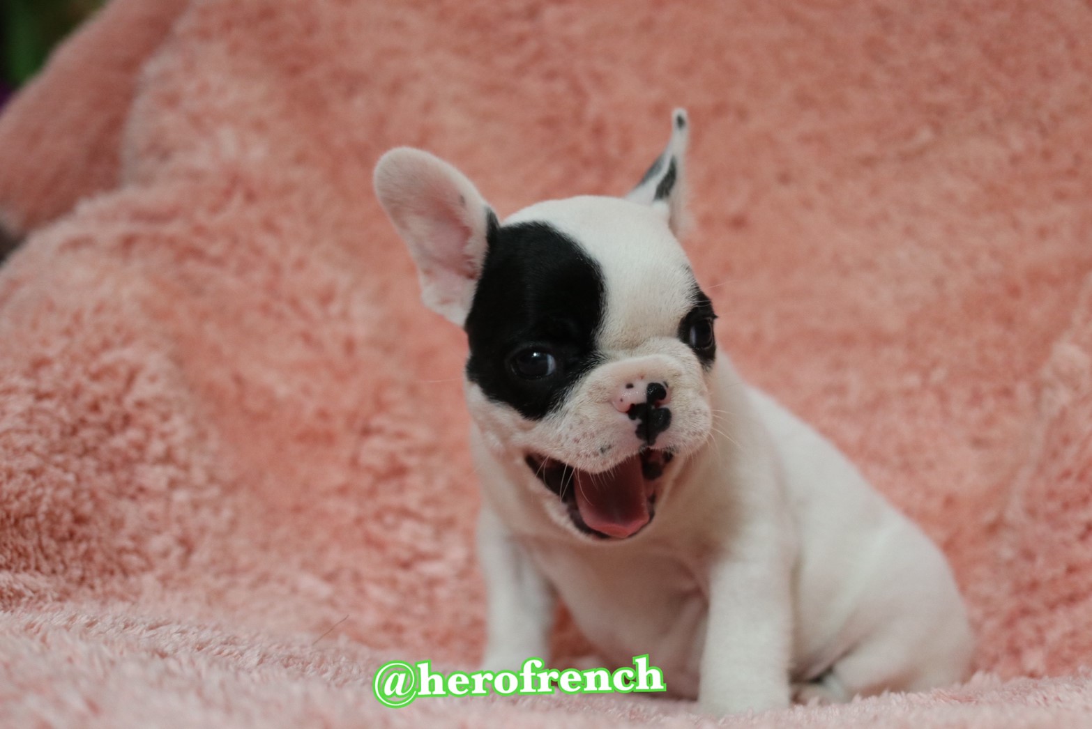 เฟรนช์บลูด็อก เพศผู้ สีขาวดำ หน้าสั้น ใบหูสั้น ขี้เล่น ทรงสวย อายุ 2 ดือน เฟรนช์บลูด็อก เฟรนช เฟรน