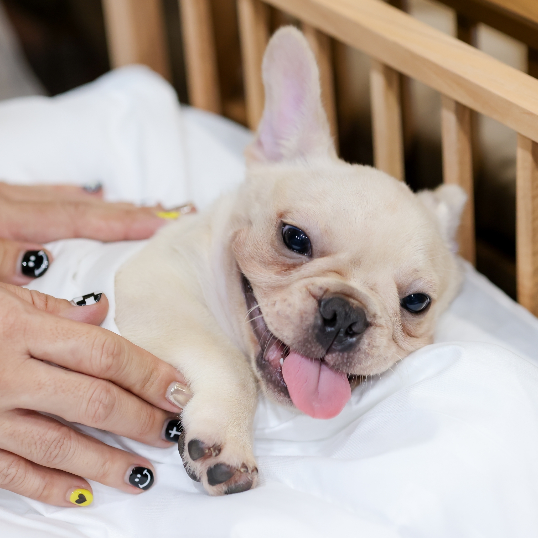 เฟรนช์บลูด็อก เพศผู้ สีครีมหน้าสั้น ใบหูสั้น ขี้เล่น ทรงสวย อายุ 2 ดือน เฟรนช์บลูด็อก เฟรนช เฟรน